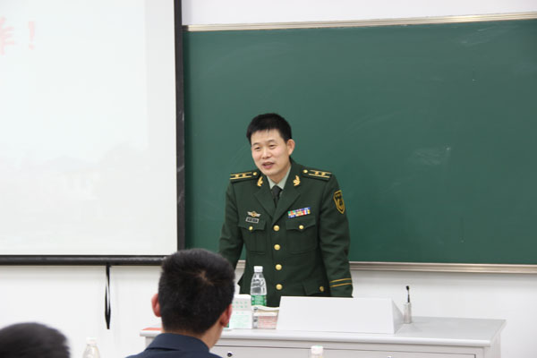 武警水电部队领导向同学们详细介绍了武警水电部队的光辉历史,新时期的发展方向,以及作为应急抢险救援力量“国家队”所承担的巨大社会责任。