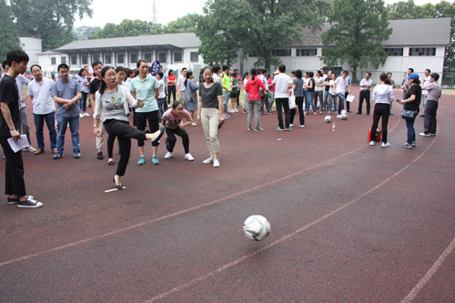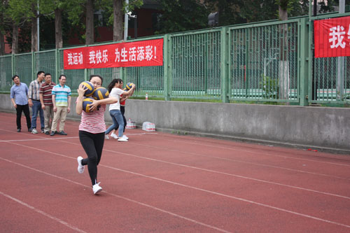 我们学院由戴玉珍副书记带领的老中青教师组成的运动队参加了全部4个项目的比赛,趣味运动会体现的就是趣味、活泼,抱球跑是我们发挥较好的项目,大家齐心协力,配合密切,一直处于领先位置,遗憾的是最后一棒的老师拉伤了肌肉,屈居第二了。踢球项目,大家练习的时候都很棒,可惜的是正式比赛发挥不出来了。毛毛虫接力赛可是个力气活,这个项目显示了我们平时锻炼的时间少了,体力明显不足。最后的跳绳比赛,发挥正常,虽然中途有失误,但没有影响比赛,成绩还是不错的。(供稿人:陶艳芝)