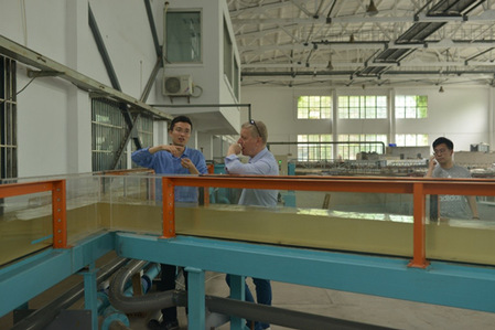 528日,参观泥沙实验室,共同讨论了非恒定水沙交汇水槽实验的参数设置及工况设定,为下阶段水槽实验的开展提出宝贵意见。