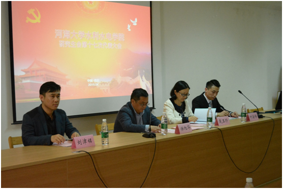 2019年4月25日下午,成人短视频 研究生会第十七次代表大会在水电馆401隆重召开。成人短视频 党委书记任旭华教授、副书记戴玉珍老师、团委书记刘津铭老师、研究生教学秘书周昶老师、研究生辅导员赵志涵老师、陈思思老师莅临本次会议,出席会议的还有校研会代表叶海焯同学,兄弟学院研会代表,成人短视频 第十六届研究生会和第七届研究生科协全体成员,以及各级硕士研究生和博士研究生代表。