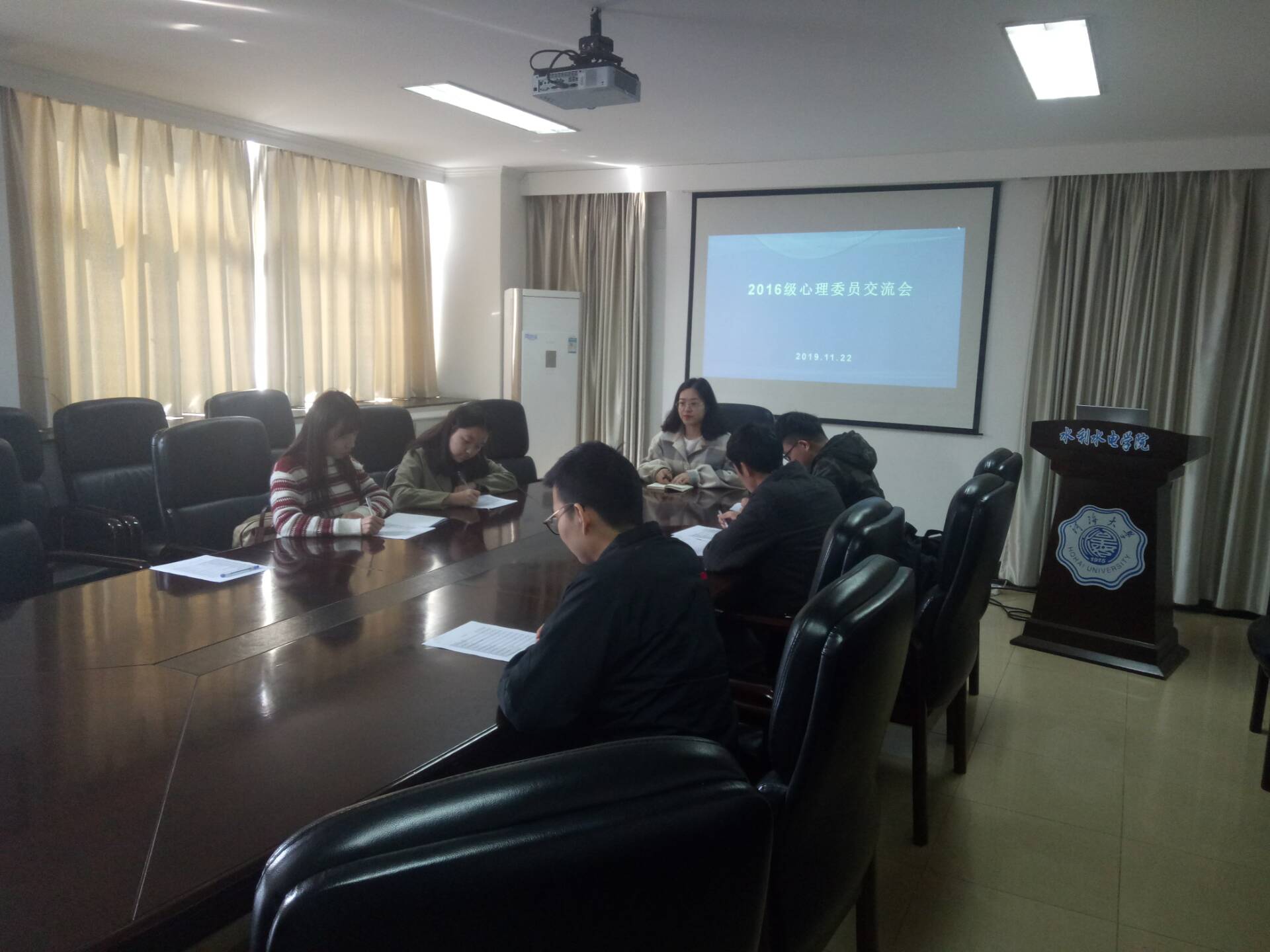 11月22日,成人短视频 召开2016级心理负责人培训交流会。辅导员、年级心理委及各班心理委参加会议。