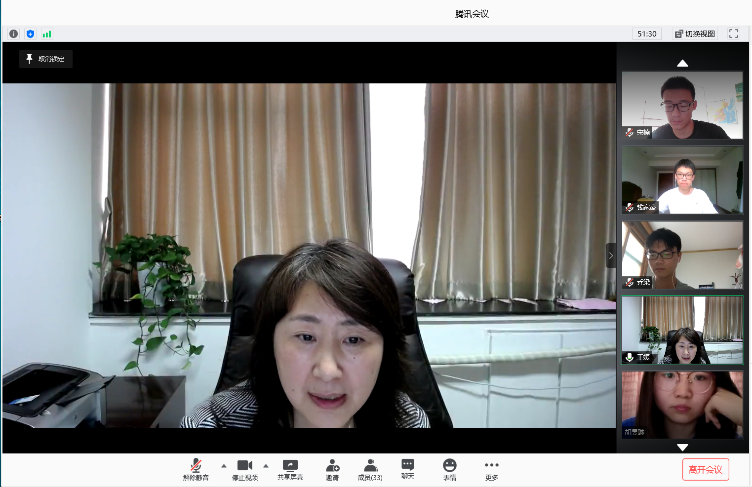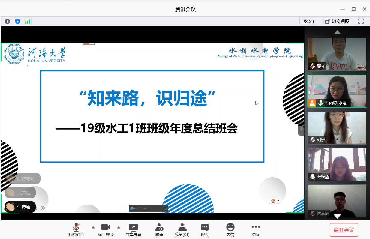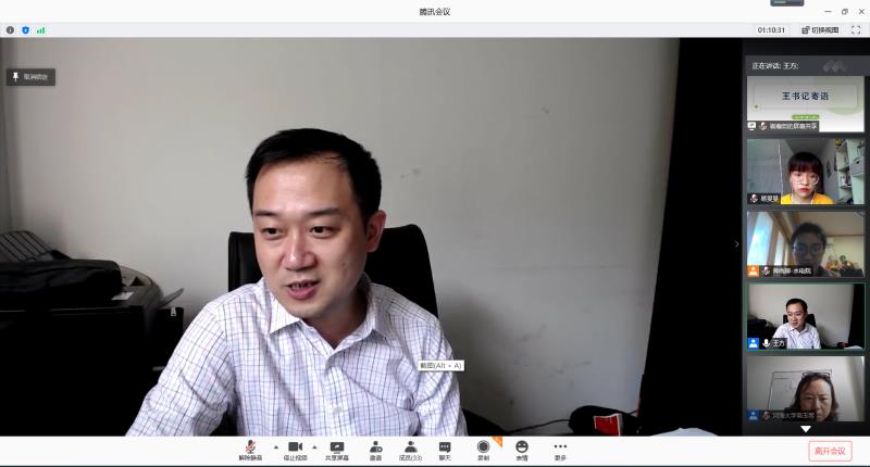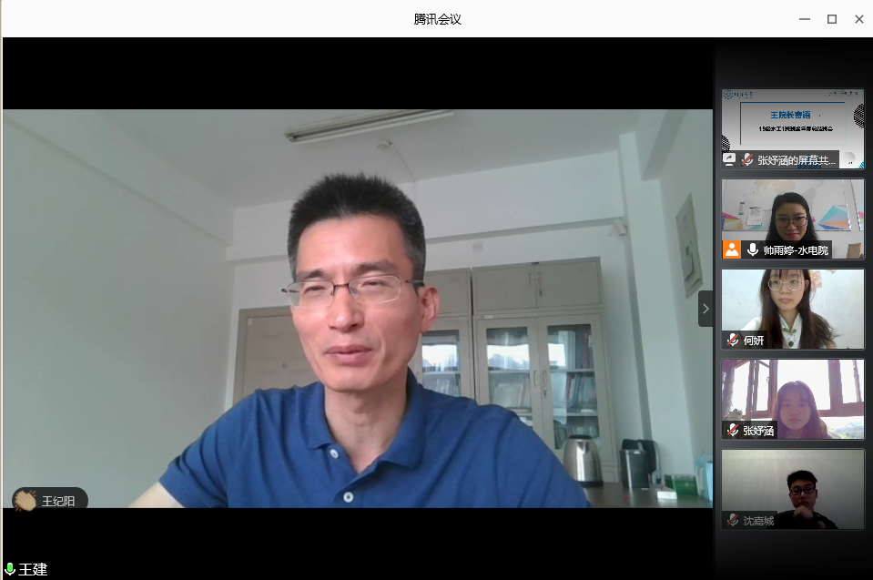 此次班会是院领导与各结对班级的同学以线上云会议方式见面。各班班长、团支书、学习委员就班级概况、班团建设成果及特色活动、学风建设经验,带领同学们进行了反思与总结;考虑到暑假即将到来的时间节点,班级同学代表就各自的时间管理方法以及暑假计划进行了分享交流,以期能为同学们提供一些启发,充实地度过大学的第一个暑假。