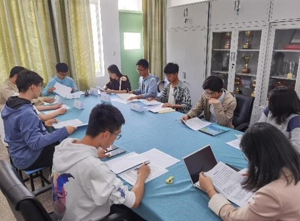 本次选拔包括笔试、结构化面试、无领导小组讨论三个环节,14名同学报名参与此次选拔。笔试部分由学校统一出题,考查学生对党和国家各项路线、方针、政策的认识,对时事政治和校内大事的关心程度以及思想品德考察等方面。面试环节中,学生通过抽签分为两组。结构化面试分为两分钟的自我介绍和三分钟的情景题回答,题目围绕学生工作中容易出现的问题,对候选人的思想政治、工作经验、工作能力等方面进行考核。无领导小组讨论通过独立思考、观点陈述、思想碰撞、拟定答案、代表总结五个阶段全面考察。选拔过程中,评委通过评估面试者的自信程度、进取心、情绪稳定性、反应灵活性等个性特点,对思维方式、合作意识、组织沟通、领导力等团队工作技能进行综合考察。