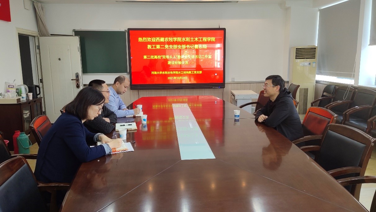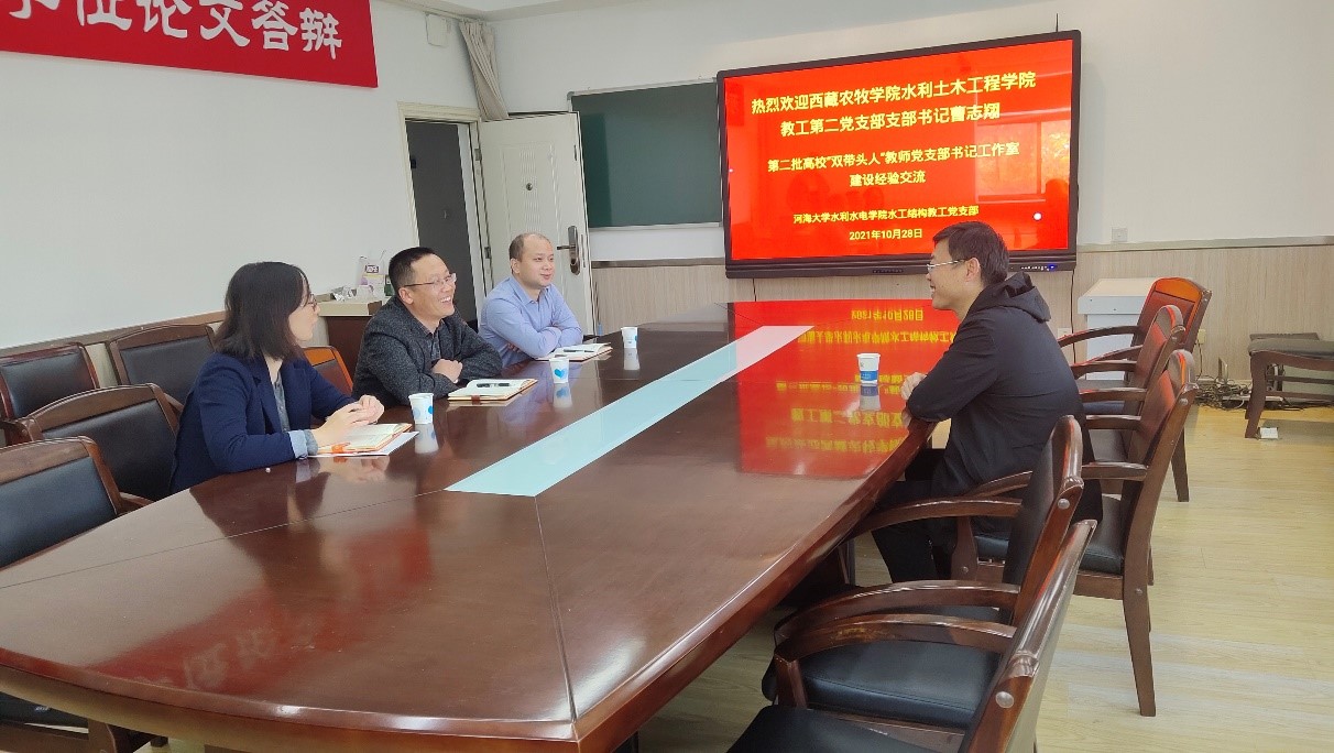 10月28日,成人短视频 水工结构研究所教师党支部与西藏农牧学院水利土木工程学院第二教师党支部开展结对共建。西藏农牧学院土木水利学院第二教师党支部书记曹志翔,成人短视频 水工所党支部书记赵兰浩、组织委员甘磊、宣传委员张汉云参加会议。