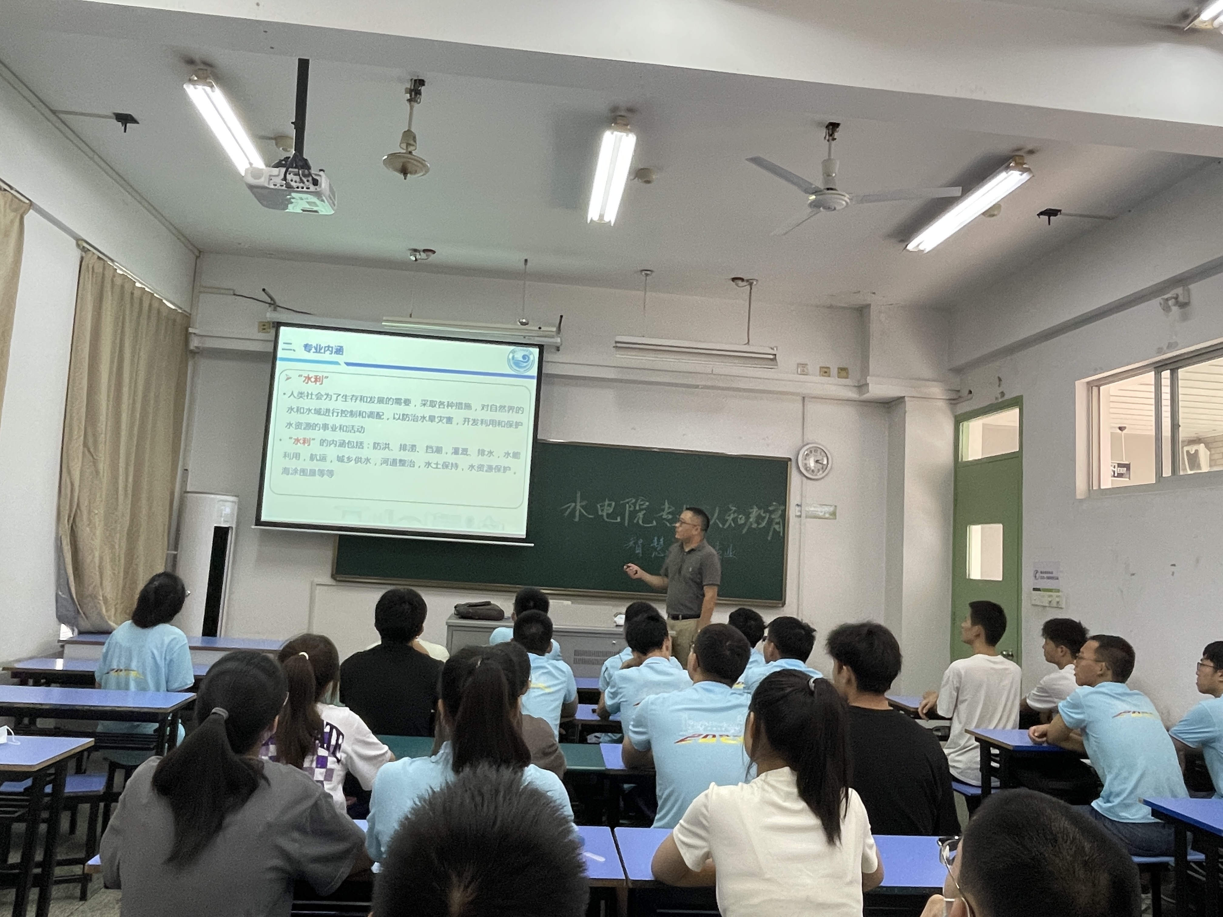 智慧水利专业认知教育讲座由俞晓东教授主讲。他提到,教育部和水利部着力呼吁培养人工智能+“X”的复合型人才,在此背景下,成人短视频 积极响应,在今年首次招收智慧水利专业的复合型工科人才。他通过智慧水利专业的背景、现状及展望三部分,详细解读了智慧水利的相关专业知识,提出智慧水利需以互联网+、物联网、人工智能、大数据、无人机,4网络、北斗通信等为依托,是新阶段水利工程高质量发展的标志。他强调,在专业课程学习方面,大一大二应该注重学习大类通识和专业基础,大三大四则注重专业主干,与数字孪生和通信技术相结合,积极发挥创新能力和实践能力。(文/范译轩、杨宇轩;图/甘志程)