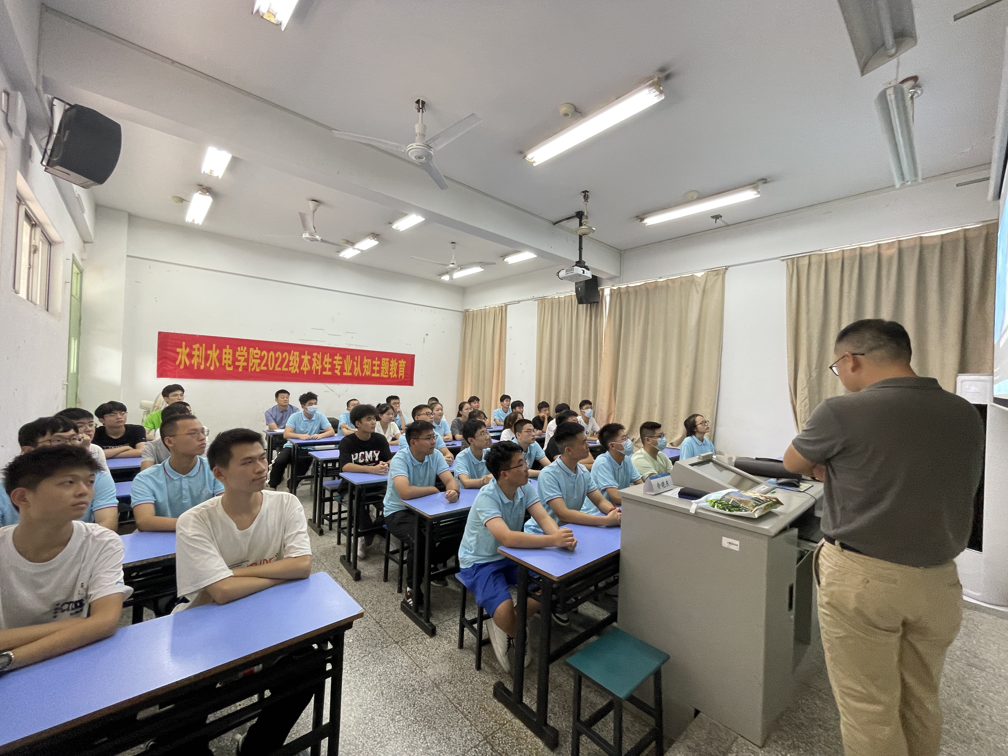 8月29日,成人短视频 开展水利水电工程专业和智慧水利专业专业认知教育主题讲座。水利水电工程专业系主任刘永强教授、智慧水利专业俞晓东教授、22级辅导员姜帆老师出席讲座,全体22级本科新生参加大会。大会由22级辅导员姜帆主持。