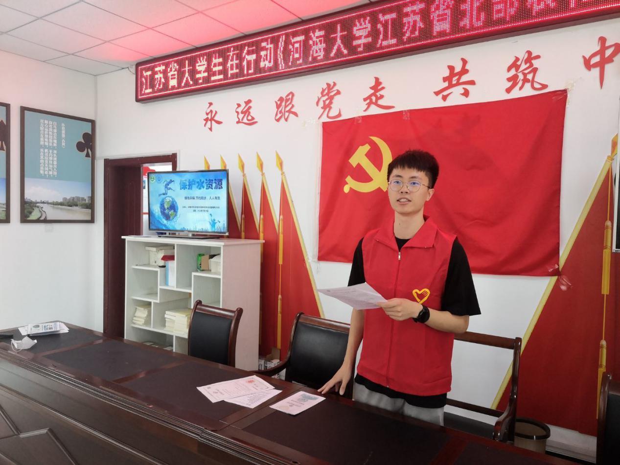 《2022年水利工程建设工作要点》中指出,要统筹推进农村中小河流治理、全面做好乡村振兴水利建设工作。为更好了解江苏省中北部农村河道的污水治理现状和河湖长制实施成效,实践团于7月19日至20日先后赴江苏省淮安市淮安区漕运镇沙口村、盐城市射阳县兴桥镇实地考察。在沙口村常书记的带领介绍下,实践团从河长公示牌设置情况、河长巡河情况、河流问题督办情况等方面了解了当地河长的工作日常,从水体整洁程度实地考察沙口村温沙河河流现状,对当地河长制实施成效进行了评估。
