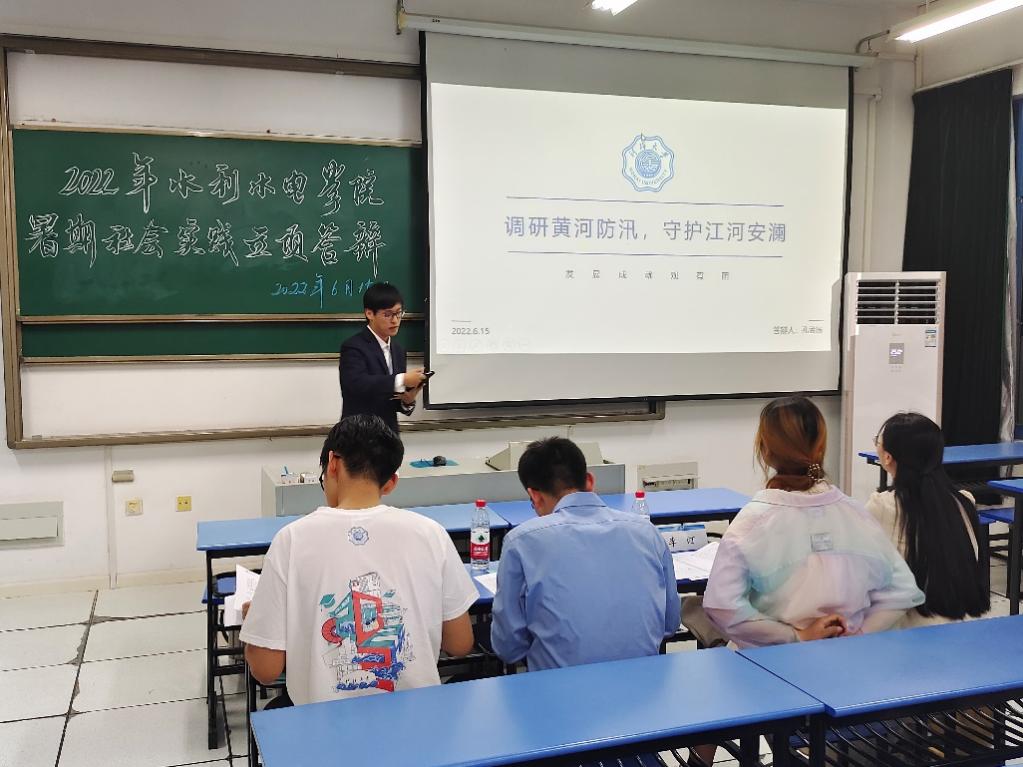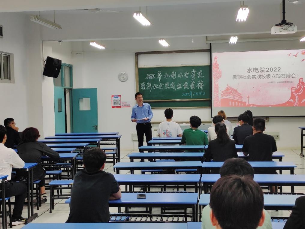 2022年6月15日,成人短视频 团委于励学楼A205举办2022年暑期社会实践校级立项答辩会。学院2021级辅导员侯开智老师,2020级辅导员梁培德老师、校科协主席团李汀、李冰逸同学担任此次答辩评委,答辩会由院团委实践部张荣翔同学主持。本次答辩会学院共计12支实践队伍参与答辩,实践主题涵盖南水北调调研、发展成就观察、乡村振兴、党史学习实践等多个主题,二十余位同学参与。