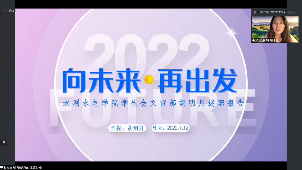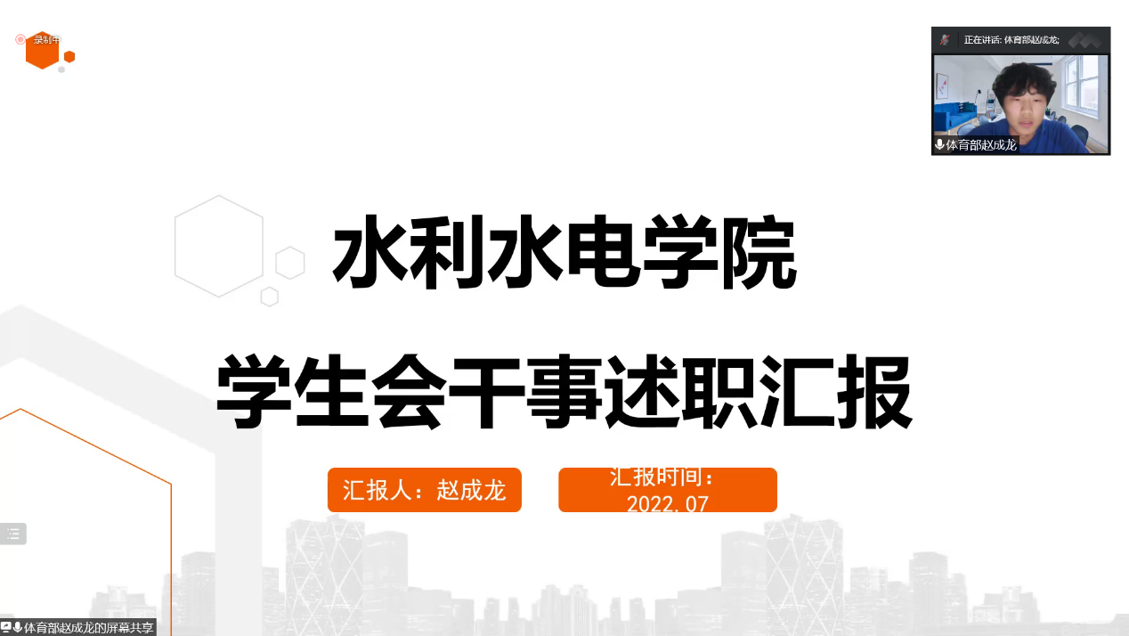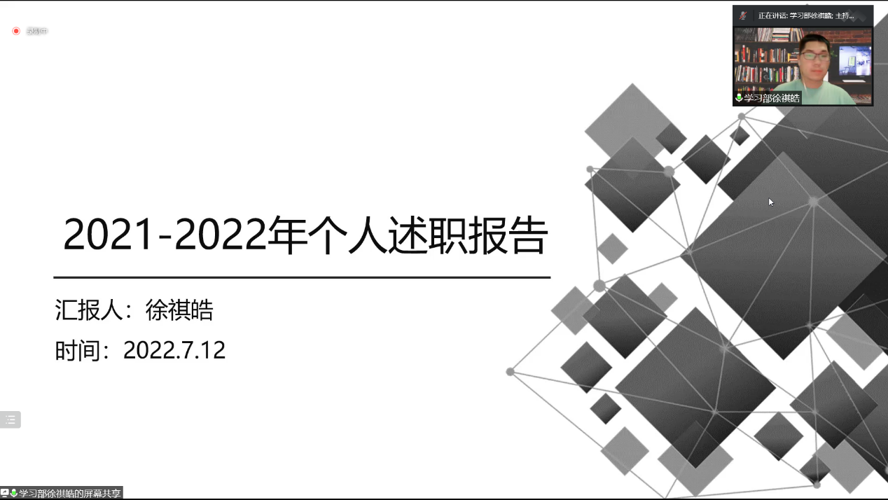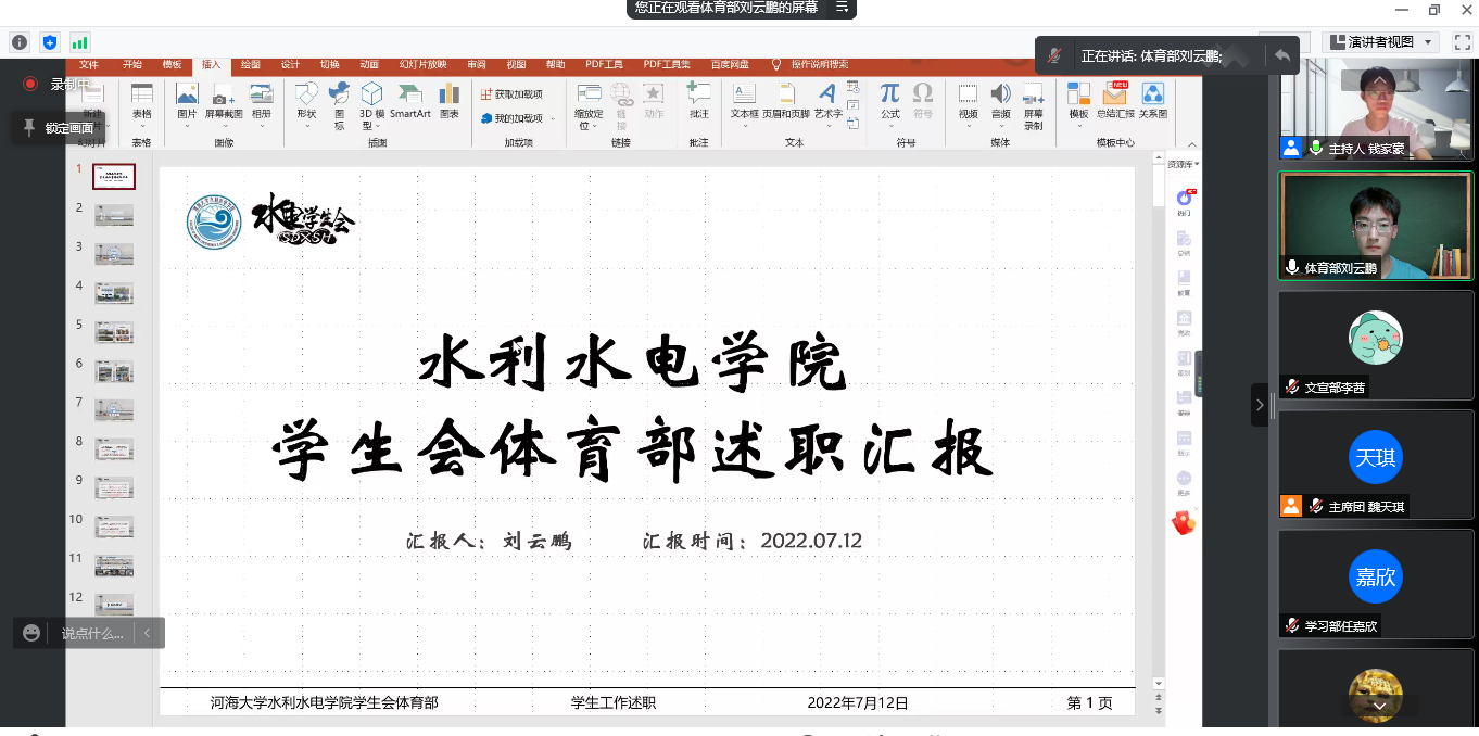 7月12日19:00,我院学生会2021-2022学年第二学期述职评议大会借助网络平台线上举行。会议由成人短视频 学生会主席团成员钱家豪同学主持,成人短视频 2020级本科生辅导员梁培德老师、2021级本科生辅导员侯开智老师、学生会全体成员以及各班班长参与了本次评议。