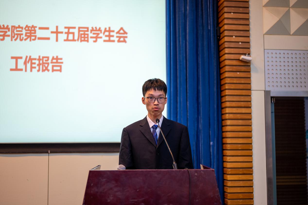 大会听取并审议了第二十五届学生会主席钱家豪所作题为《持续深化组织改革,塑造清新阳光形象,在实现中华民族伟大复兴中焕发青春光彩》的工作报告。
