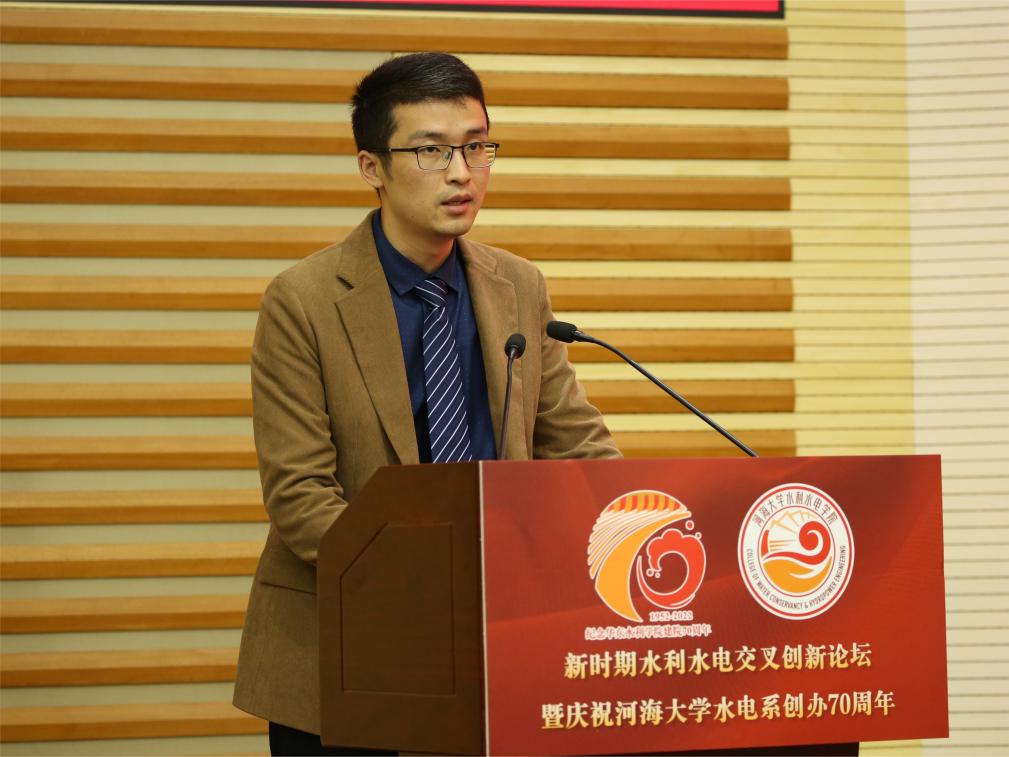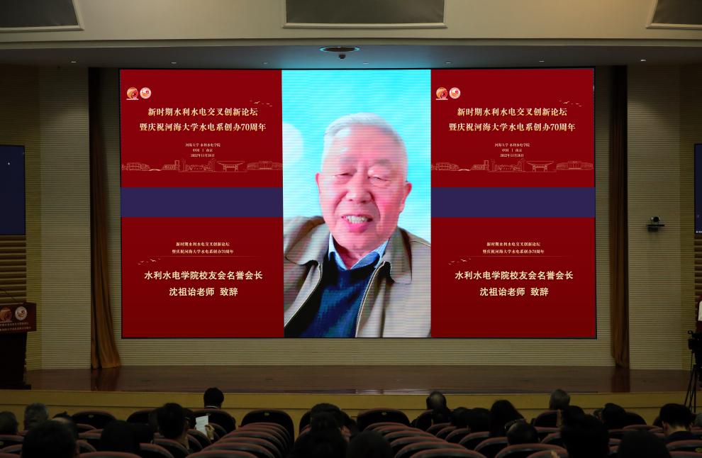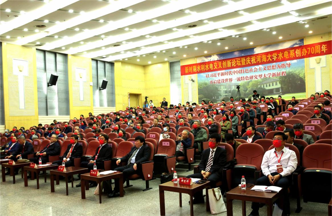 1126日,新时期水利水电交叉创新论坛暨庆祝成人短视频 水电系创办70周年大会在闻天馆108举行。中国工程院院士、成人短视频 党委书记唐洪武,中国工程院马洪琪院士、王浩院士、王超院士、胡春宏院士、邓铭江院士、中国科学院王光谦院士、成人短视频 校长徐辉出席大会。江苏省水利厅原一级巡视员叶健、成人短视频 原校长姜弘道、常务副校长李俊杰、党委副书记郭继超、副校长郑金海、中国水力发电工程学会副理事长朱跃龙、清华大学土木水利学院书记傅旭东,兄弟高校、科研院所、行业单位、海内外校友、校内职能部门及兄弟学院主要负责人、学院师生以线上线下相结合的方式参加了本次大会。大会由成人短视频 党委书记娄健主持。