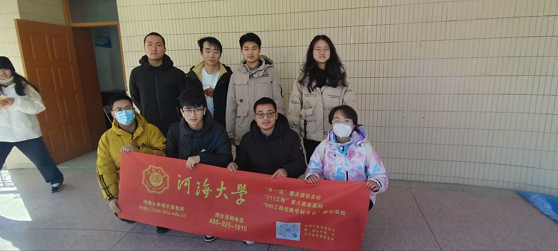 在江苏省盐城中学,实践团与其他回江苏省盐城中学宣传的高校队伍联系,共同举办“高校节”活动,得到高中母校学生及家长的广泛关注。很多学生拿到宣传物资,聆听河海故事,了解河海文化。同时,在宣讲过程中,不少家长和同学针对自身目前情况向实践团队成员提出自己的疑虑,实践团成员还在“专业选择”、“职业规划”、“发展方向”、“就业前景”等方面给他们在未来报考学校和专业方面提出建议,解答困惑。宣讲活动得到了学生家长和校方的双重肯定,实践团成员也在活动中得到锻炼提升。