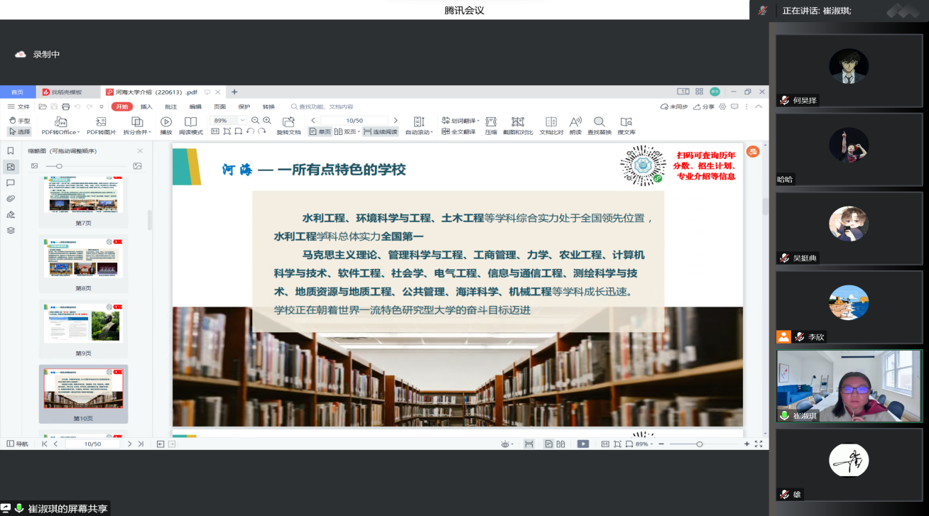 在海口市第一中学,实践团队在腾讯会议举行线上宣讲,为学弟学妹们的高考择校提供帮助。实践团成员提前演练,精心筹划,从校园文化、创新创业、学科特色、专业前景等多方面展现了成人短视频 的优势及特点,并向大家分享高考经验及大学生活,与同学们进行交流沟通、答疑解惑,为参会的同学们提供了优良的了解平台。本次宣讲激发了高三学子对大学生活的渴望与期待,也祝愿学弟学妹在新动力下不断前行,铸就辉煌!
