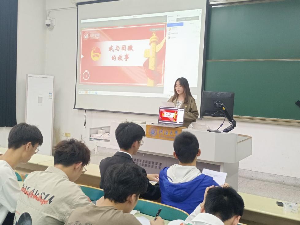 杨孙浩同学进行“团结奋斗新征程,保守秘密靠大家”主题团课,全面介绍维护国家安全的重要性,以鲜明的案例、系统的阐述,带领大家树立维护国家安全的意识,分享关于保守秘密的建议,提醒同学们注意生活中的泄密陷阱,筑牢维护国家秘密安全的校园防线。