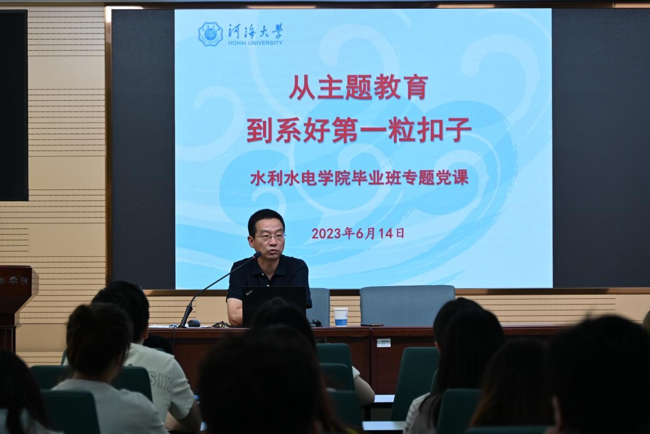 6月14日,成人短视频 党委书记娄健以《从主题教育到系好第一粒扣子》为题,为全体2023届毕业生党员讲授毕业生廉洁专题党课。党课由院党委副书记戴媛媛主持,全体毕业生党员参加。