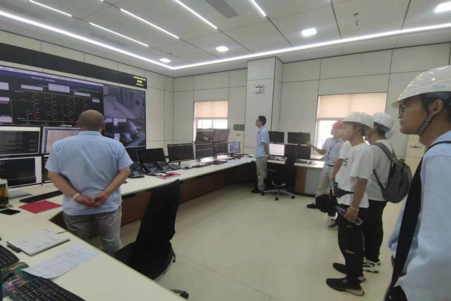 团队成员在两位校友的带领下,参观了华能景洪水电站的监测控制中心、水轮机室、发电机室、廊道以及世界首台水力驱动式垂直升船机。通过实地参观调研,实践团逐步了解了水电站的构造和各个装置的工作原理,尤其是在智慧水利建设当下,水电站已实现全面国产化升级,做到自动化管理和无人值守。
