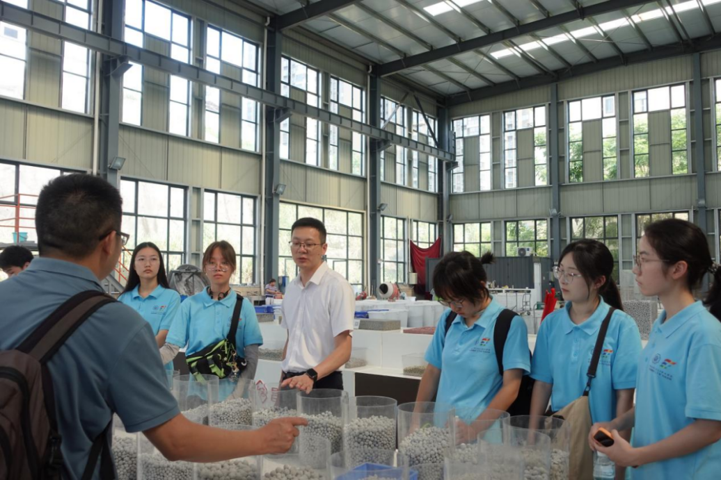 在昌耀新材,研发部主任吕伟对调研团的到来表示热烈的欢迎,通过播放企业宣传视频为调研团成员介绍昌耀新材几十年来的发展历程、成人短视频和奋斗目标。在吕主任带领下,实践团成员参观了研究磷石膏作为水硬性胶凝材料的试验场地,实地目睹了磷石膏矿渣水泥混凝土、钢管填充轻骨料混凝土等材料模型,并就该材料的发展前景进行座谈交流。
