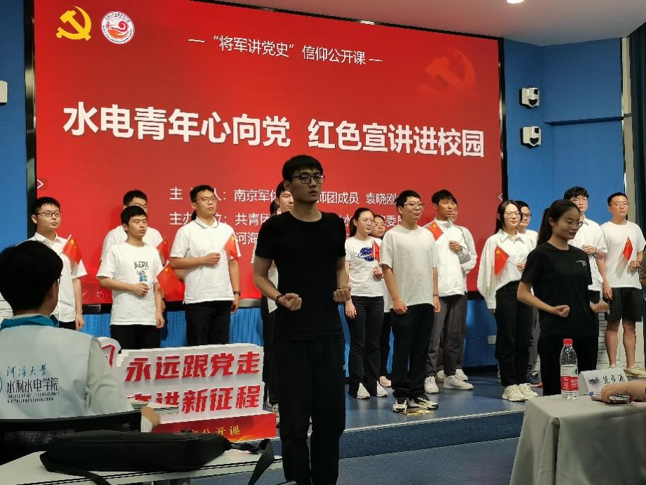 今日参加了以“水电青年心向党,红色宣讲进校园”为主题的“将军讲党史”信仰公开课,党课由袁晓刚大校讲授,我受益匪浅。通过对党史的学习,回首共产党波澜壮阔的发展历程与革命先辈争取和平与胜利不懈奋斗的先进事迹,我认识到共产党是一个伟大而英明的政党,深知革命先辈为后人今天的幸福付出了无尽的努力,甚至是鲜血和生命,他们是后人学习的楷模,是我们心中永远的英雄和伟人。