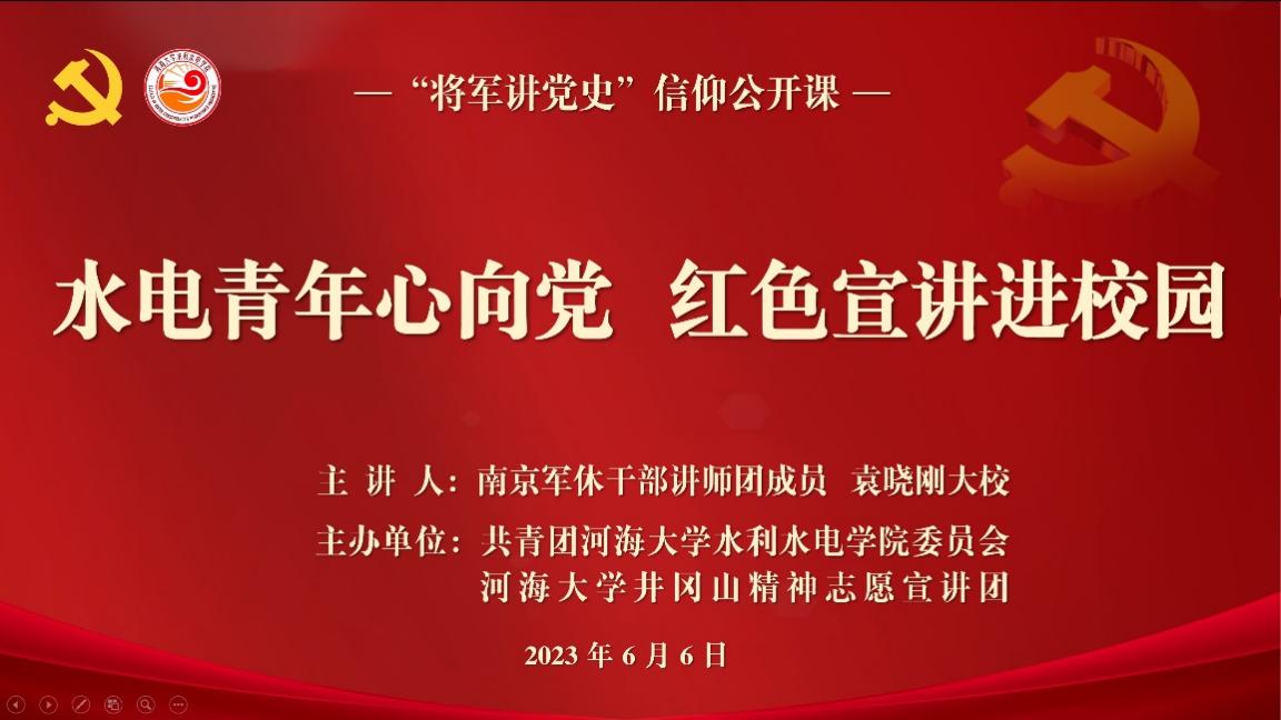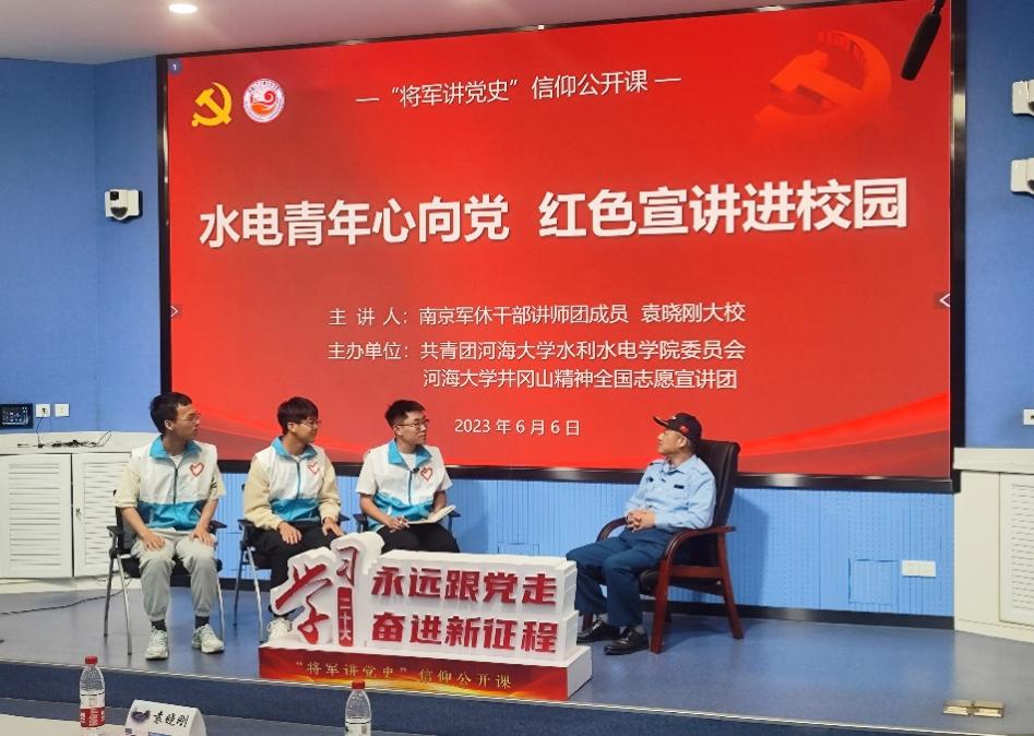 为深入开展学习贯彻习近平新时代中国特色社会主义思想主题教育,引导学生深刻感受中国共产党领导下取得的伟大成就,用党的创新理论引领青年工作。6月6日,成人短视频 开展“水电青年心向党,红色宣讲进校园”信仰公开课。邀请南京军休干部讲师团成员袁晓刚大校进行主讲,院党委副书记戴媛媛、宁海路街道二级调研员朱岩、院团委书记笪步源、学院各党支部书记、团学骨干代表参加活动。