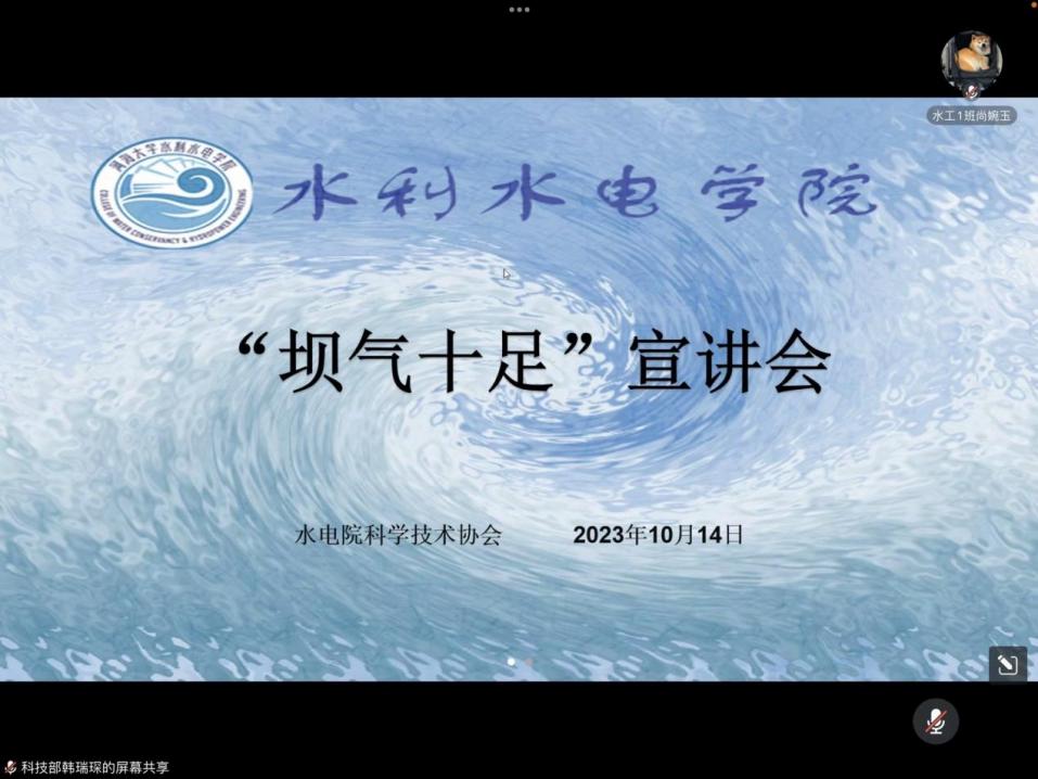 近日,成人短视频 举办第十七届“坝气十足”坝型设计大赛线上宣讲会,会议邀请往届获奖团队成员做经验分享,全校各参赛团队、院科协全体成员参加宣讲,各参赛队伍代表参加。