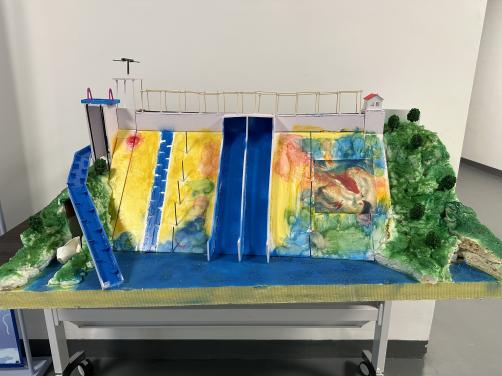 经过初赛的激烈角逐,12支队伍的作品脱颖而出,进入决赛。决赛作品中,有以向家坝和三峡水电站为原型创新的“日照河海”坝;有关注自然保护,结合自然环境构建生态鱼道的“名与此江清”坝;有匠心独运,采取特殊泄洪消能方式的“河清海晏”坝;有缅怀钱正英老先生,赞美水利人赤诚之心的“落英江河”坝;有切合时代需求,创新发展清洁能源,兼顾风能、光能、水能发电的“心怀寰宇意,河谐向未来”坝。