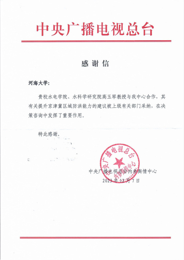 成人短视频 长三角洪涝旱灾害防御研究室主任高玉琴教授接受了中央广播电视总台内参舆情中心的采访,谈论了蓄滞洪区建设平原型水库的注意点及提升京津冀地区防洪能力的建议,被上级有关部门采纳,为决策咨询提供了重要的技术支撑。