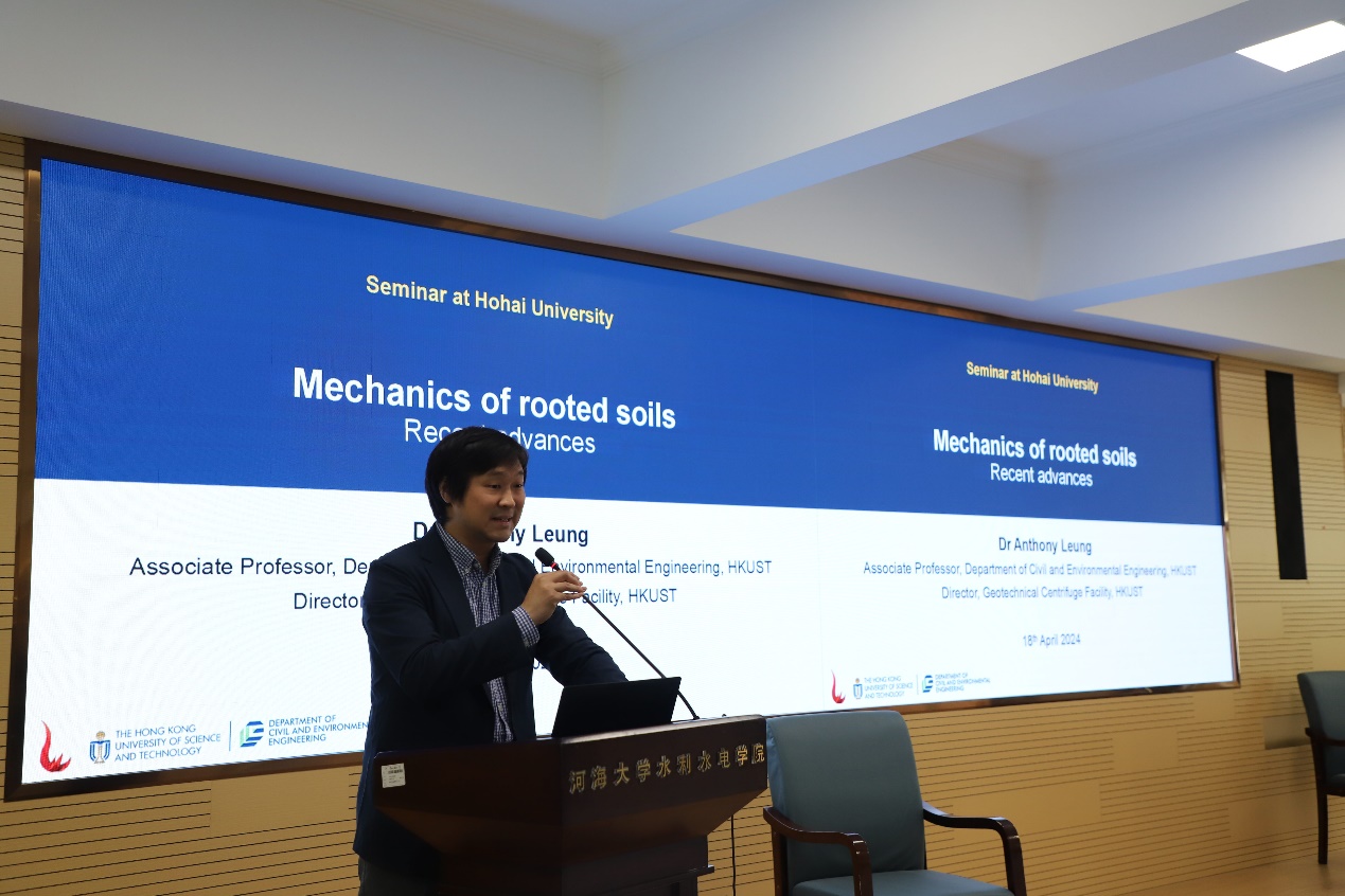 梁钧教授应邀做题目为“Mechanics of rooted soils: recent advances(根系土力学新进展)”的学术报告。报告聚焦非饱和根系土的水力-力学特性的最新科学发现及其对生态斜坡工程设计的影响,讨论人工智能(AI)在发现孔隙尺度下土壤-根系-水相互作用研究中的最新进展,相关研究是气候变化加剧背景下防灾减灾的创新实践,与成人短视频 智慧水利、安全科学与工程相关学科研究高度契合,受到参会老师和同学的热烈欢迎。在交流研讨环节,青年教师和研究生与梁钧教授围绕非饱和实验技术、人工智能应用等问题开展了热烈的学术互动,梁教授分享了他对相关问题的见解,并对青年学者未来的研究提出了建议。
