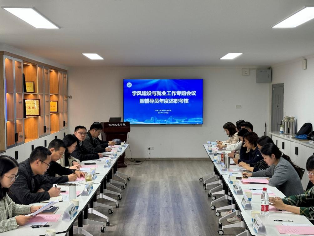 4月19日,成人短视频 举办学风建设与就业工作专题会议暨辅导员年度述职会议。院领导班子成员、各系所长、教师支部书记、班导师、辅导员与学生代表参加会议。会议由学院党委副书记戴媛媛主持。