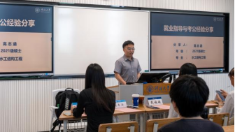 高志涵同学从考公准备到就业方向,分享了其个人就业心得与经验。他以详实的经历,深入解析了考公各阶段的备考策略、面试技巧及心态调整,提供了宝贵的参考意见。同时,他还分享了水利水电行业的就业趋势和方向,为在场同学们的职业规划提供了有益的指导。