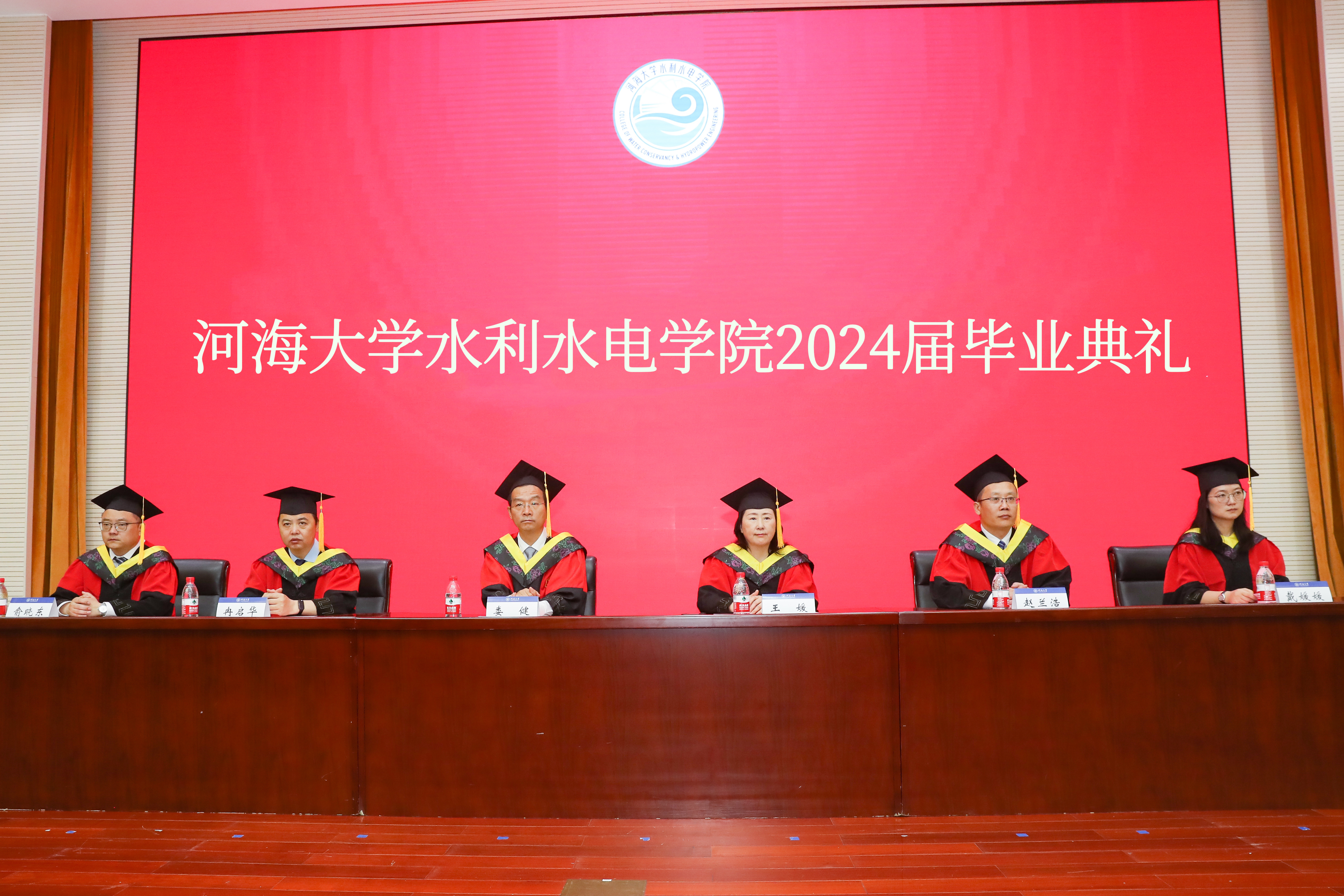王媛发表致辞,她代表全院师生向顺利完成学业的全体毕业生们表示最热烈的祝贺,向辛苦劳作的教职工老师以及学生家长们致以由衷的感谢。王媛对全体毕业生提出三点期望:一是家国为先,坚守学水为善的初心使命,传承河海人的家国情怀和使命担当。二是矢志前行,绘制治水安澜的水利蓝图,成为担当水利强国大任的时代新人。三是笃行不怠,开创赓续发展的水利新篇,为祖国水利事业改革发展、中华民族伟大复兴贡献力量。她祝愿毕业生秉河海之魂乘风破浪,做擎天之柱建功立业,成济世之才强国兴国。