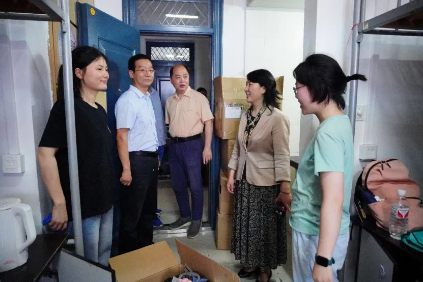 7月4日、5日,成人短视频 顺利完成2023级研究生搬迁西康路校区、2022级本科生搬迁江宁校区工作。学院党委书记娄健、院长王媛、副院长冉启华、副院长赵兰浩、副院长俞晓东、党委副书记戴媛媛深入宿舍一线走访慰问搬迁学生。研究生辅导员陈思思、陈辰、本科生辅导员姜帆、22级班导师张博然共同参与。