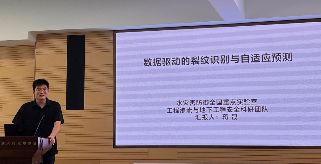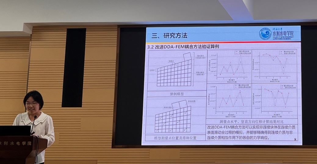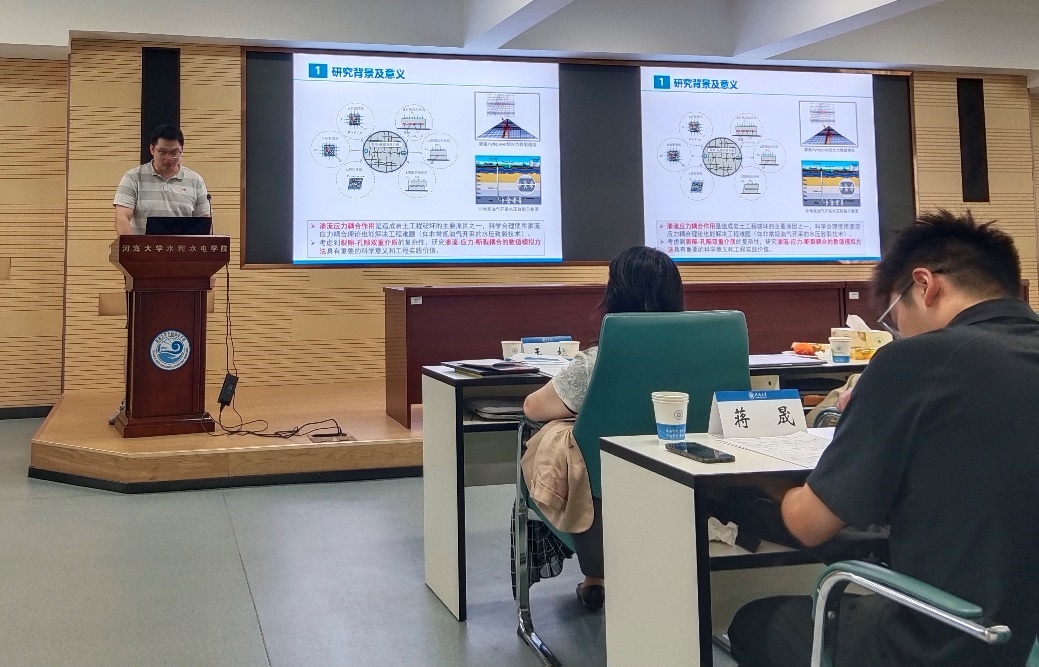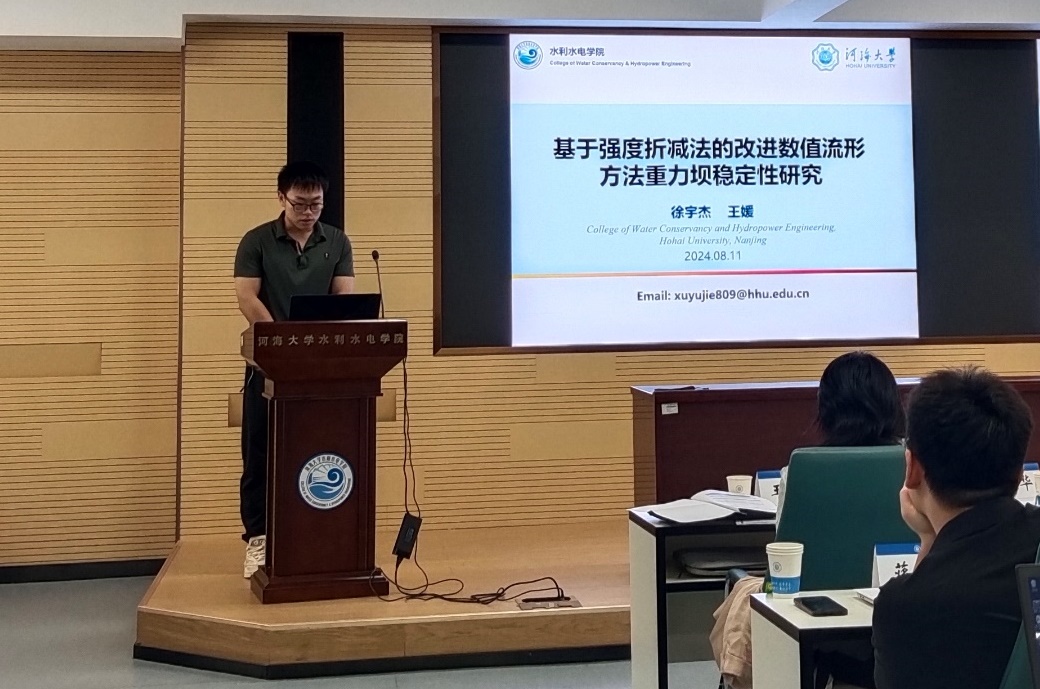 成人短视频 徐宇杰博士生汇报的题目是“基于强度折减法的改进数值流形法的重力坝稳定性分析”。首先简要介绍了重力坝稳定性分析中遇到的各种难题。从流体不同作用形式的方面分别解释了对应不同的势能项和其作用形式的不同点。从一个基础的算例到重力坝工程的算例计算,验证了数值流形方法计算的正确性和精确度,揭示了流体的不同作用形式对稳定性分析的影响。