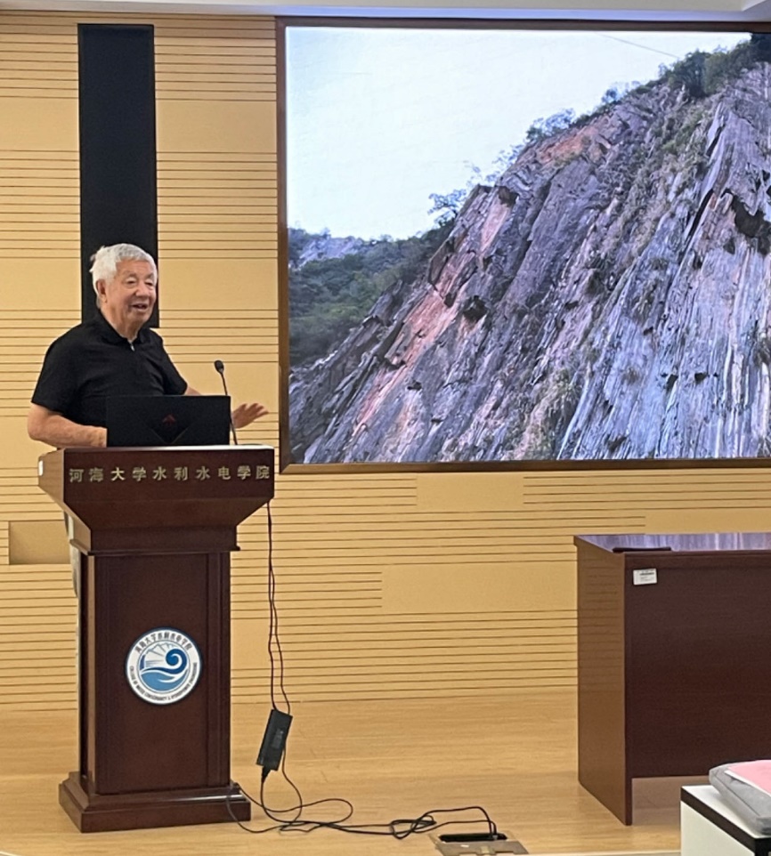 2024年8月11日,“2024数值流形学术研讨会”在成人短视频 水电馆301召开,研讨会由成人短视频 、数值流形研究中心、中国岩石力学与工程学会教育工作委员会主办,成人短视频 承办。会议邀请了数值流形法创始人石根华先生及相关领域的数值分析专家进行学术交流研讨,共举行特邀学术报告2场,数值方法学术汇报6场,线下参会人员共计40余人。