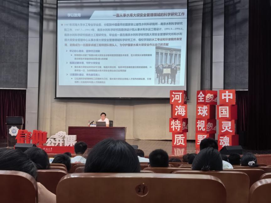 盛金保校友现任水利部大坝安全管理中心总工程师、南京水利科学研究院大坝安全与管理研究所所长,兼任成人短视频 教授,领衔团队荣获首届“国家卓越工程师团队”等荣誉称号。分享会上,盛教授以“学以致用,为水库大坝安全保驾护航”为主题,向新生们详细讲述了水库大坝在国家水安全和公共安全中的重要性,强调了保障大坝安全是水利学子的责任和使命。