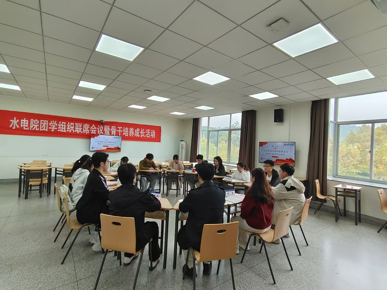 为进一步提高成人短视频 团学组织凝聚力,加强各组织主席团的协作交流,提升主席团成员的工作能力与交流沟通能力,2024年11月13日,成人短视频 举办“水电优才-先锋骨干领潮计划”团学组织联席会议暨骨干培养成长活动。院团委、研究生会、学生会、青年志愿者协会、学生科协、传媒中心全体主席团成员参加,会议由院团委书记笪步源主持。