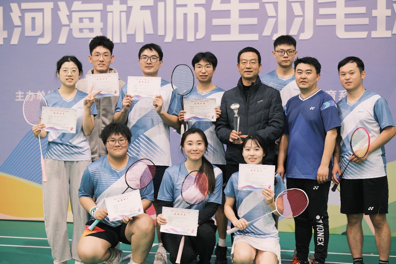 2024年12月7日,“河海杯”师生羽毛球比赛在常州新校区落下帷幕。本次赛事中,成人短视频 党委书记娄健担任领队,刘晓青、罗玉龙、林青炜三位教师参赛,学生队员为汤瑞、胡博扬、洪豆、刘顺然、周冰逸、陈静茹、向海岚,涵盖成人短视频 本硕博各级学生。本次比赛共有21支来自不同学院的代表队参加,参赛团队历经混双、男双、女双、男单、女单五个赛程,采取团体赛五局三胜制。我院羽毛球队表现出色,经过多轮激烈对决,一路披荆斩棘进入决赛,斩获亚军!