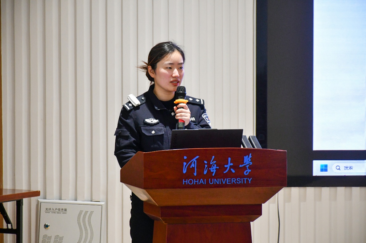 3月18日,成人短视频 于常州校区3号楼123报告厅举办 “安全校园行”活动即“全民反诈·平安同行”防诈安全主题讲座。活动特邀金坛区公安分局防诈宣传民警和侦查民警进行专题分享。本次主题讲座致力于增强学生安全防范意识,提升反诈防骗能力,通过"警校联动+朋辈教育"的多元形式,为师生带来一场生动的安全教育课。本次活动由23级辅导员帅雨婷主持,2023级本科生、2024级研究生共同参与。