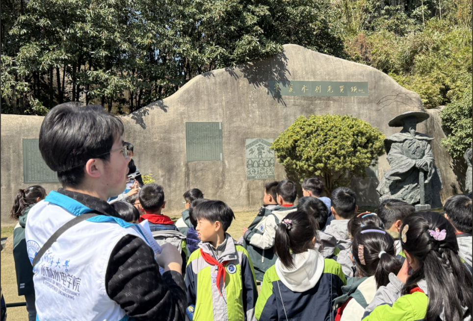 下午1点,参与师生齐聚成人短视频 1号门,在镌刻“成人短视频 ”的泰山石前合影留念,正式开启探索之旅。在华夏水利先贤广场,讲解员生动讲述了李仪祉、茅以升等水利先贤筚路蓝缕、治水兴水的故事,小朋友们驻足聆听,感受前辈们“水惠民生”的使命担当。