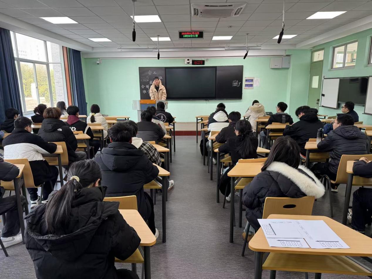 班会上,孙啸主任提出要加强对成绩和学分的重视程度,明确自己的目标方向和发展道路,培养创新和人际交往能力,为未来的学习和工作打下坚实基础。此外,孙啸主任还为同学们详细分析了本专业的发展前景和就业方向。他结合行业趋势和实际案例,帮助同学们更好地了解专业特点,明确学习目标。