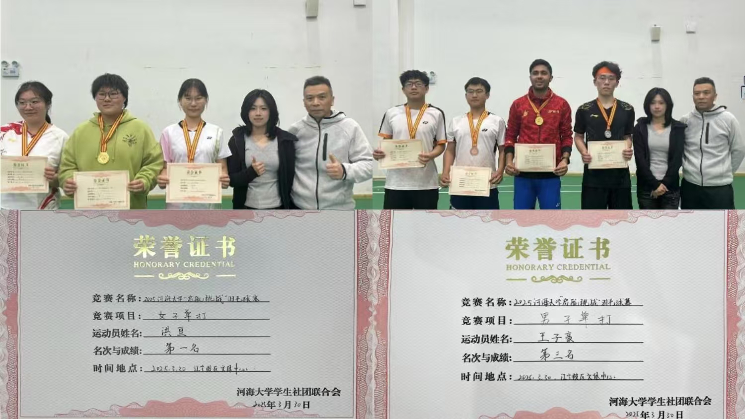 3月30日,成人短视频 2024级本科生洪豆和王子豪从来自全校31个学院90余名选手中脱颖而出,在成人短视频 2025年"启航挑战"羽毛球赛中荣获女子单打项目第一名、男子单打项目第三名。本次赛事由校团委主办,校羽协、体育系承办,采用单场淘汰制决出优胜者。