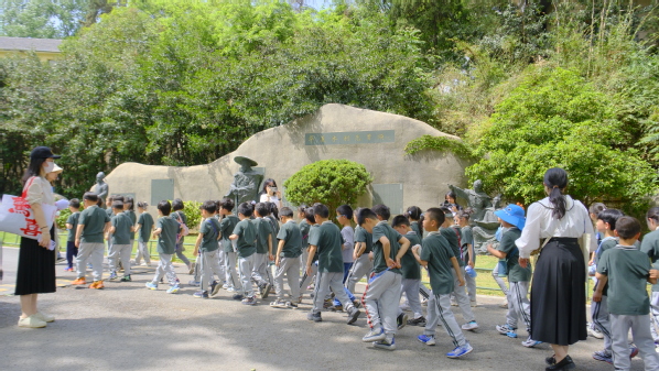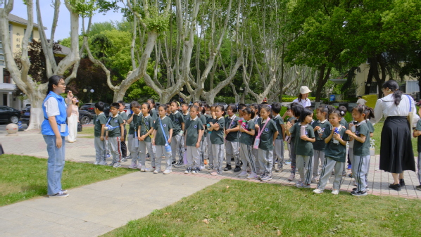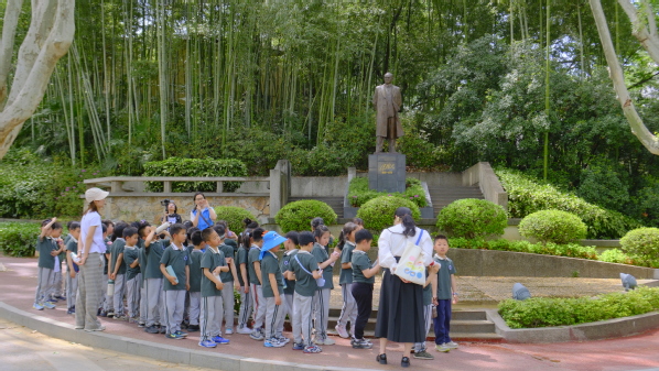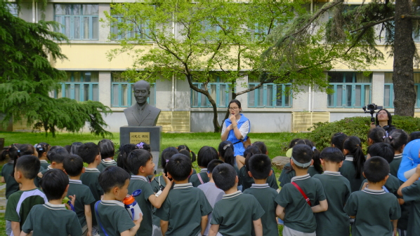 沐浴着清凉山的金陵古韵,感受着石头城的沧桑巨变,矗立在西康路校区中心区域十字路口西北麓上的张闻天同志全身像铜像和严恺先生铜像雕塑吸引了小朋友们的注意,伴随着志愿者娓娓道来的讲解,张闻天先生和严恺先生的形貌开始在小朋友们的脑海中增添上血肉。
