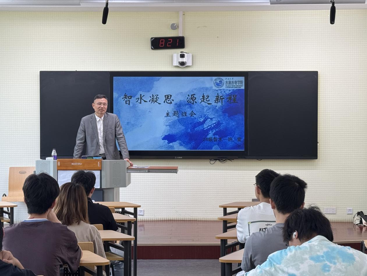 为深化专业认知、凝聚班级力量,成人短视频 2024级智水一班与智水二班于成人短视频 江宁校区开展主题班会。淮河水利委员会水文局原局长钱名开、成人短视频 党委宣传部部长魏有兴出席并讲话,智慧水利系主任、智水二班班导师许栋、智水一班班导师朱延涛、辅导员笪步源及班级全体学生参与,班会通过经验分享与互动交流,共话成长方向。