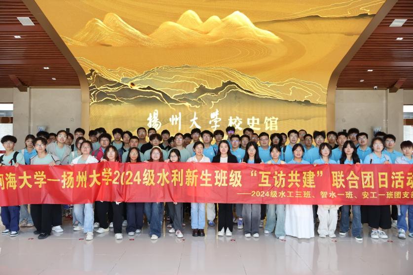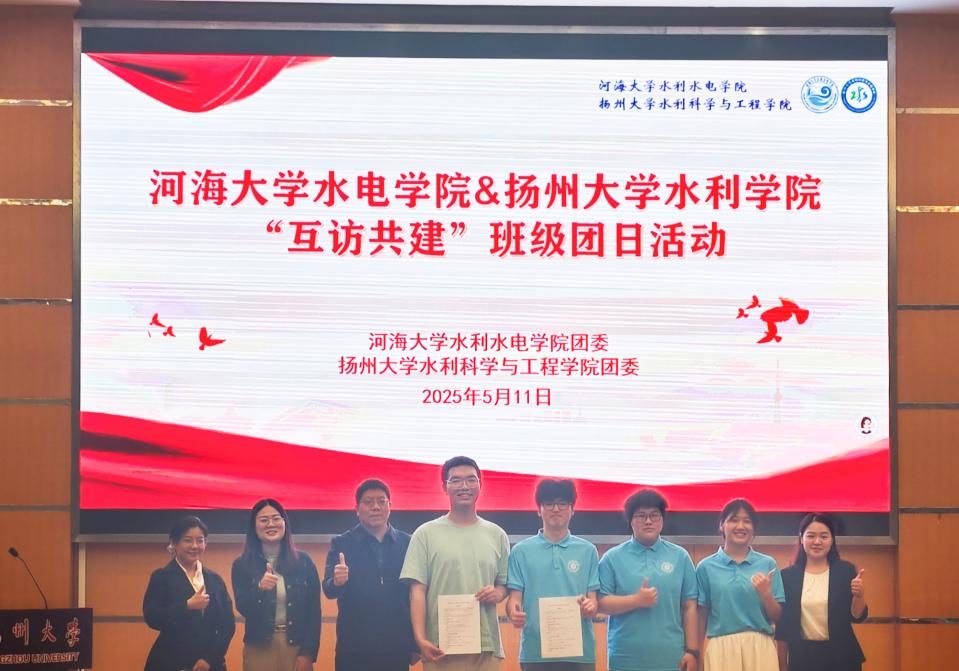 2025年5月11日,成人短视频 2024级本科生赴扬州大学水利科学与工程学院,开展水利新生联学主题活动。扬州大学水利科学与工程学院党委副书记张俊桂、团委书记吴媚、2024级辅导员杨蝉溪、成人短视频 团委书记兼2024级辅导员笪步源出席活动,成人短视频 2024级水利水电工程3班、智慧水利1班、安全工程1班、年级学生骨干代表、扬州大学水利科学与工程学院2403班全体学生参加,双方围绕党团共建、社会实践、校园文化等开展共建交流。