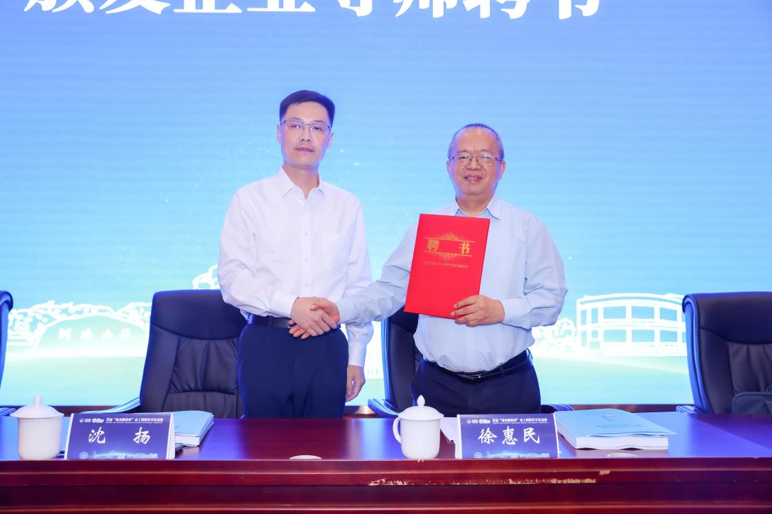 沈扬副校长向南水股份董事长徐惠民颁发企业导师荣誉证书。