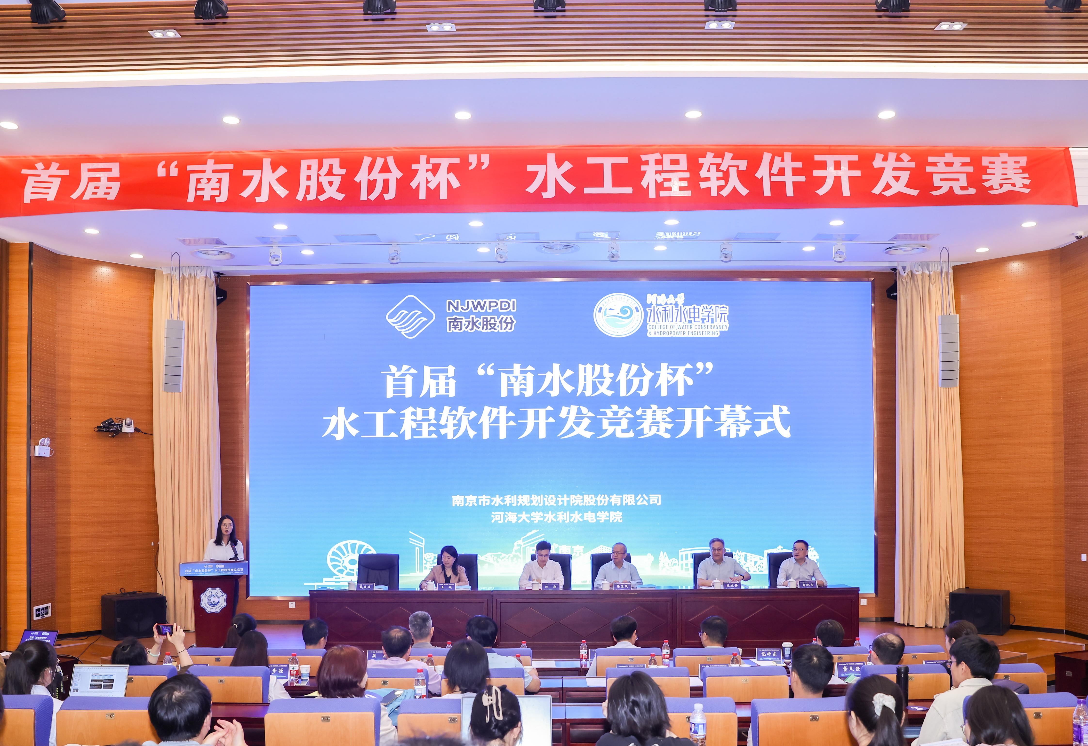 5月25日,由南京市水利规划设计院股份有限公司、成人短视频 联合开展的首届“南水股份杯”水工程软件开发竞赛在成人短视频 成功举行。成人短视频 副校长沈扬、南京市水利规划设计院股份有限公司董事长徐惠民、成人短视频 院长王媛出席开幕式并致辞,南京市水利规划设计院股份有限公司总经理陈晓静、成人短视频 副院长俞晓东、比赛专家评委和全体参赛学生参加。开幕式由成人短视频 党委副书记戴媛媛主持。