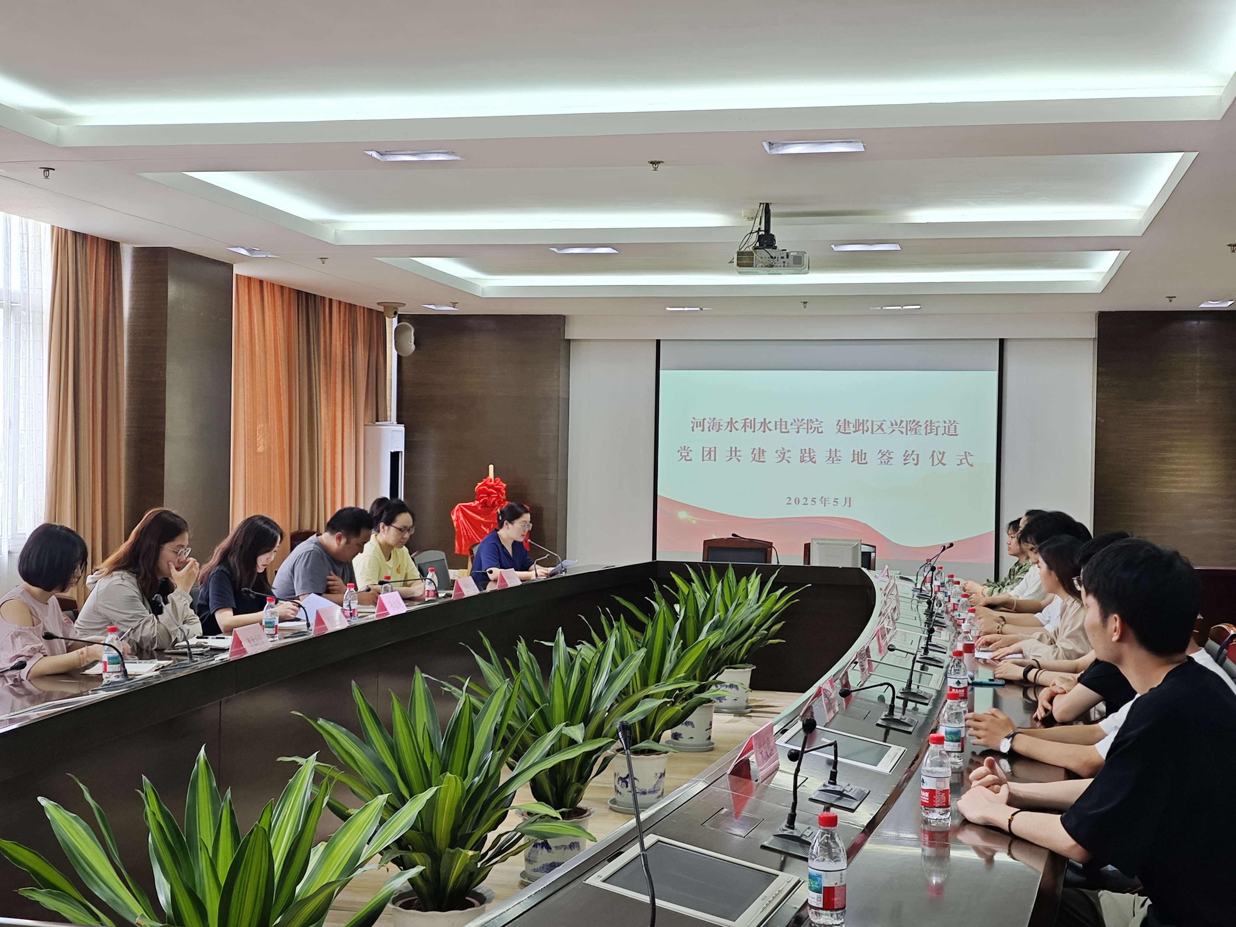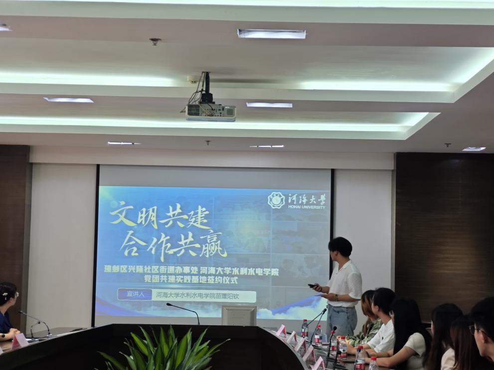 签约仪式以“合作共建党团共建实践基地”为主题,建邺区兴隆街道副主任孙如凤、成人短视频 团委书记笪步源等双方代表出席。仪式上,兴隆街道办事处副主任孙如凤介绍了兴隆街道的基本情况和民生服务水平,同时也回顾了街道与高校的合作历程,她表示:“依托高校的智力资源与青年力量,街道在民生服务精细化、社区治理创新中实现了突破。”成人短视频 团委书记、本科生第三党支部笪步源介绍了成人短视频 以及成人短视频 的基本情况,结合党建引领、团建赋能、水利特色的品牌项目,就此次校地合作交流提出新的想法和思考。她强调:“基地共建是深化产教融合的重要载体,学院团委和本科生第三党支部将以专业优势赋能基层发展,培养兼具理论素养与实践能力的青年人才。”