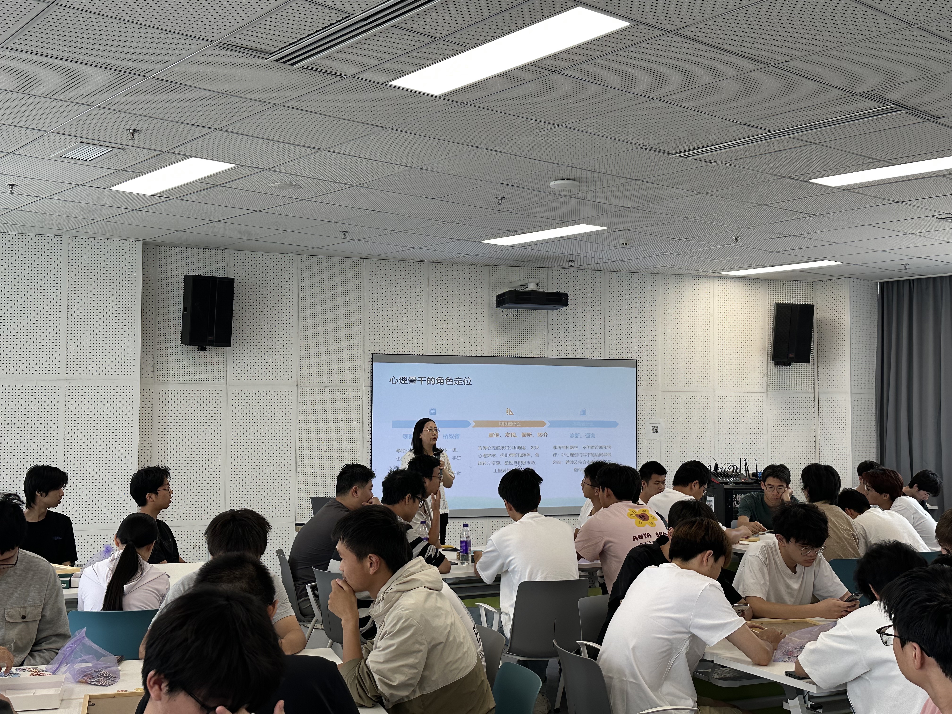 周老师为同学们讲解心理骨干的角色定位,告诉同学们如何做好心理骨干这一角色。她向同学们讲解如何区分正常心理与异常心理,介绍了正常心理、焦虑、强迫等心理问题的特征,帮助同学们更好地理解和区分常见心理问题。最后,周老师为同学们总结了如何做好心理骨干工作,表达了对同学们心理工作展开的美好祝愿。