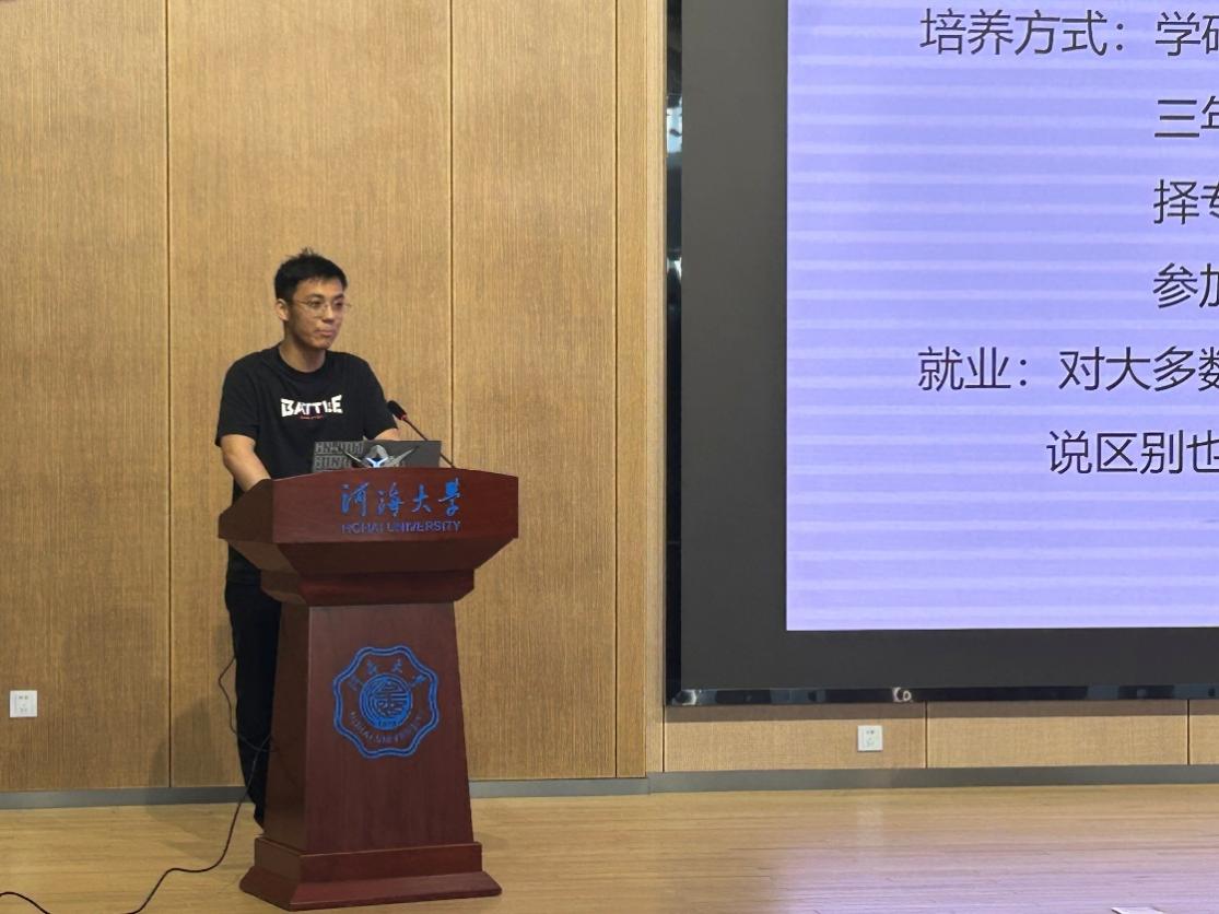 受邀的6位2021级优秀毕业生代表结合自身经历进行交流分享。考研专硕代表张俸千学长,以390+的高分成功考研至本校,结他合自身考研经历,详细讲述了课程学习、考研备战与时间管理之间的平衡策略,鼓励同学们重视平时积累,早做准备,积极争取考研名额。
