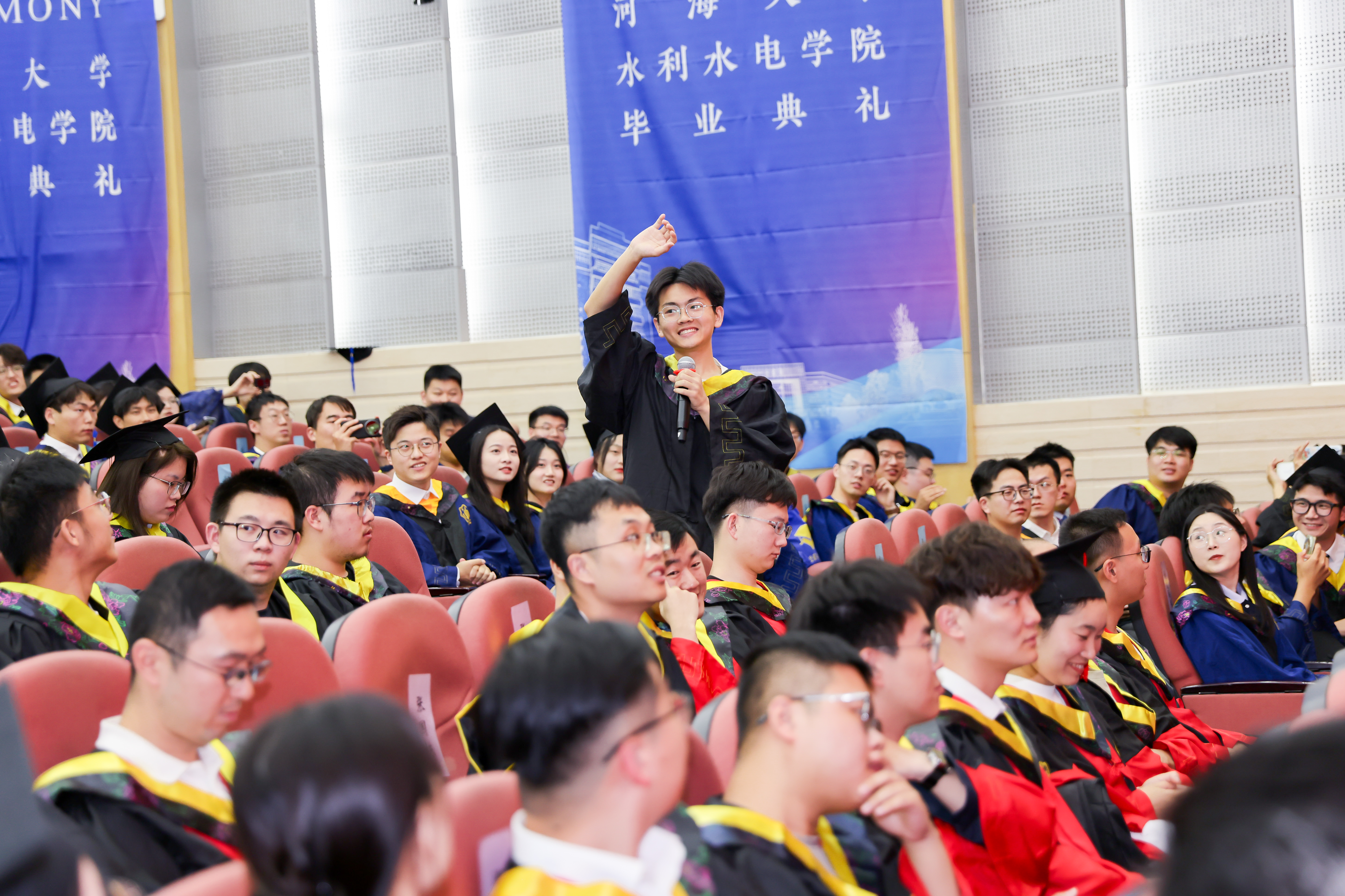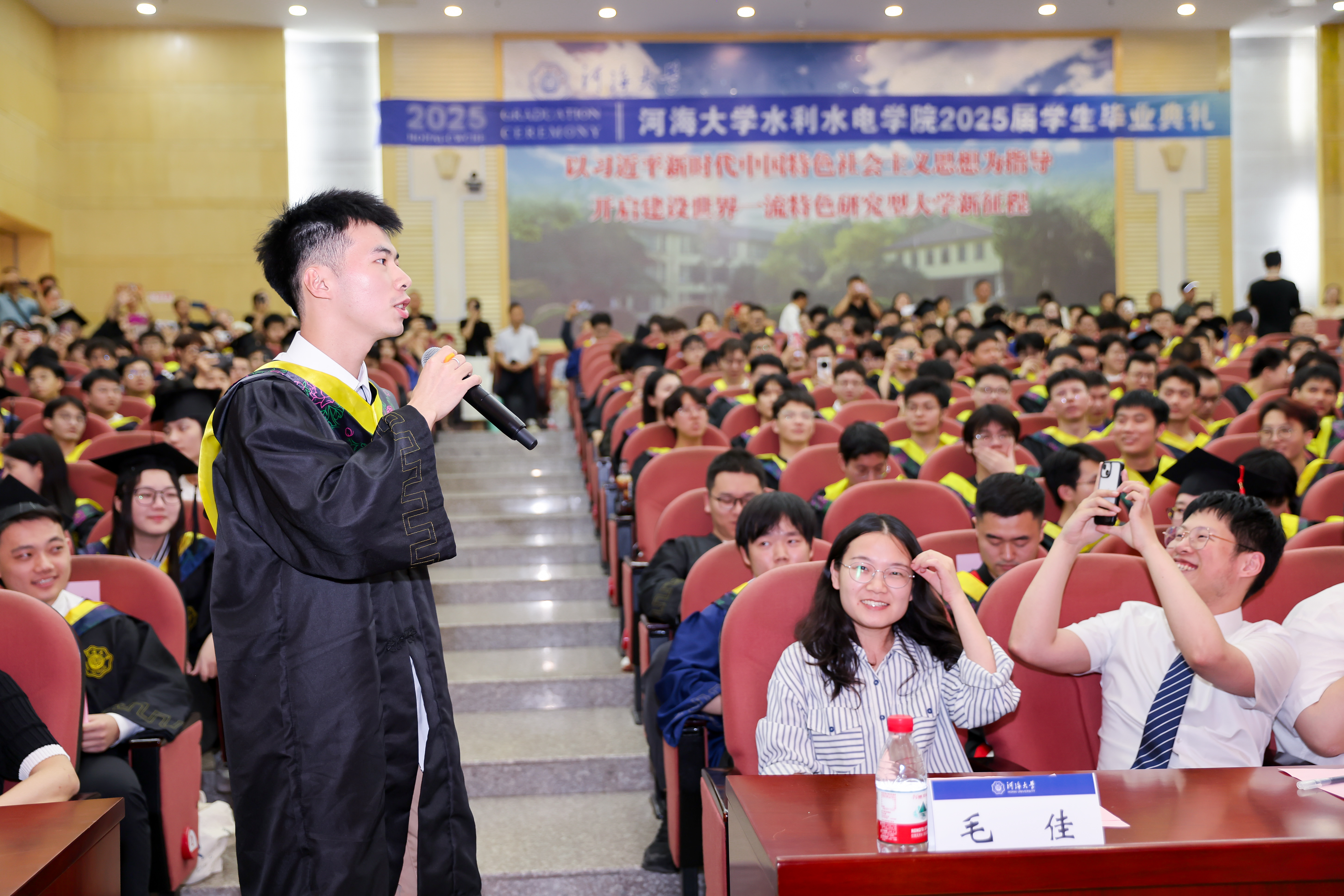 研究生毕业生代表王皓臻、本科生毕业生代表陈贤博先后发言,以求学点滴为引,分享了科研项目与竞赛的经历,讲述了专业学习与社会实践中的收获,感恩母校培养的严谨品格与家国担当,感恩老师给予的谆谆教诲,感恩同窗给予的深厚情谊,表达了对学校的惜别之情,祝愿成人短视频 在学校110周年的新起点上,弦歌不辍,芳华永驻,再谱华章!未来无论身在何方都将以“水之子”的身份奋勇向前,谱写属于水利人的壮美诗篇!