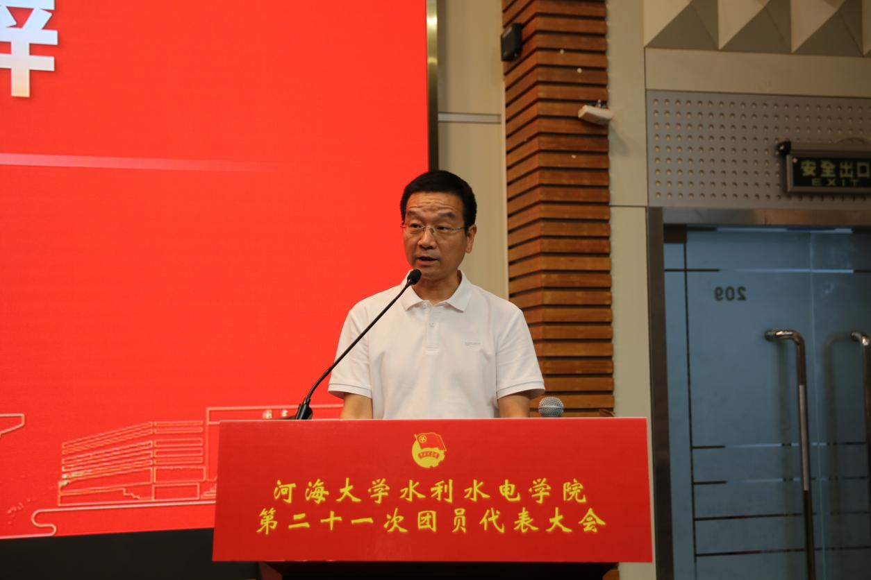 院党委书记娄健感谢与会嘉宾代表的到来,并对学院团委上一年度的出色工作表示祝贺。他表示,水电院团委融合水利学科特色,以青年发展为核心,以思想引领铸魂、组织建设强基、素质拓展赋能,在团的“三力一度”建设上创新突破,立足学科构建科创实践与社会服务结合的素质拓展体系,在服务大局中强化服务贡献力与大局贡献度,形成学科特色与青年活力兼具的团学工作格局。娄书记也寄语:一要将共青团工作融入学院党建体系,通过党团协同推动团学与人才培养深度融合,助力高质量育人;二要以贴近青年为目标加强组织建设和骨干培养,聚焦青年学业、科创、职业规划等需求,服务水电青年成长成才;三要牢记水利人“治水安邦”使命,胸怀“国之大者”,在服务国家水利事业中勇担重任,开创水电院共青团工作新局面。